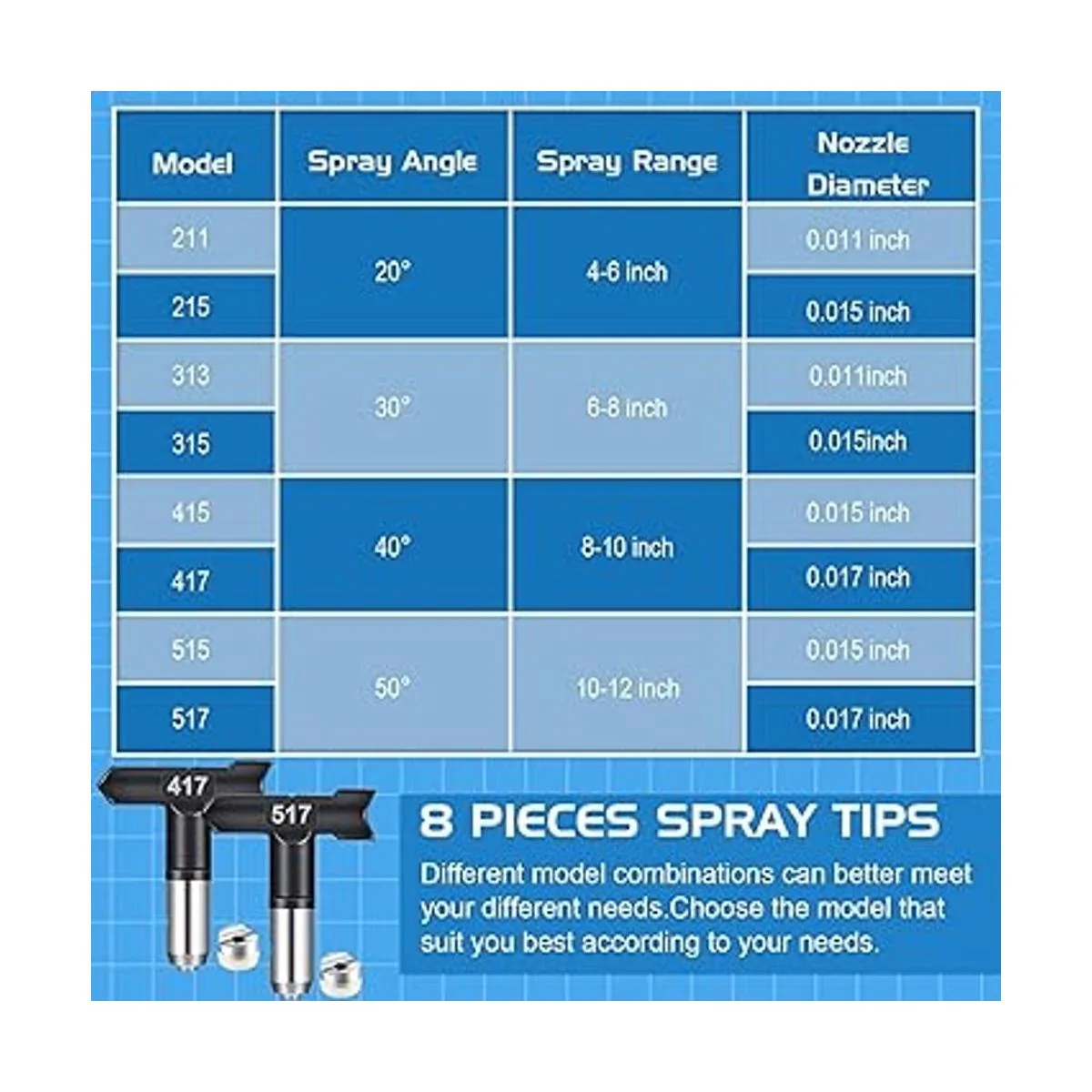 Zhengmy 8 puntas de pulverizador de pintura reversibles, puntas de pulverización sin aire, boquillas de pulverización sin aire, piezas de máquina de pulverización para hogares, edificios, cubiertas de jardín 211, 215, 311, 315, 415, 417, 515, 517