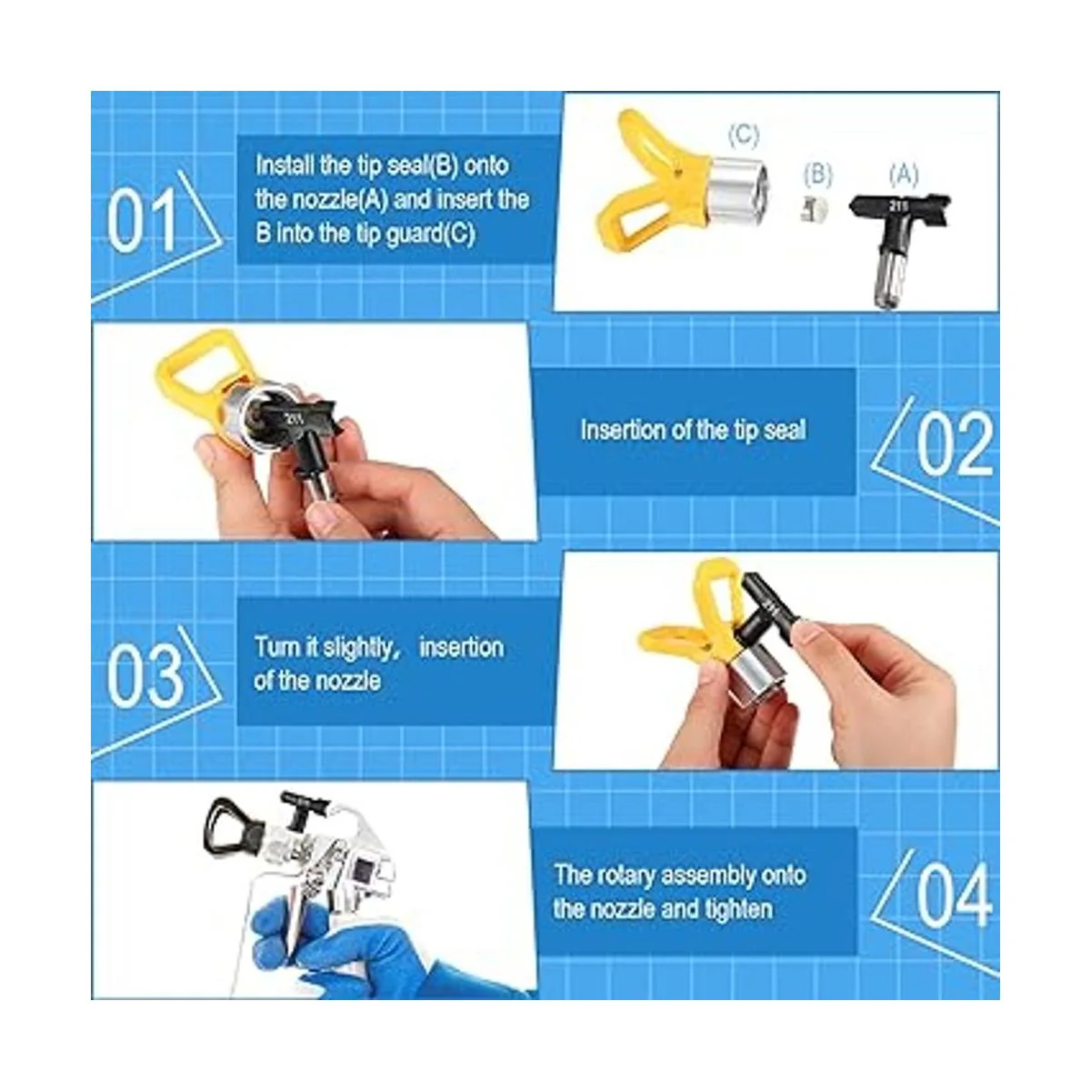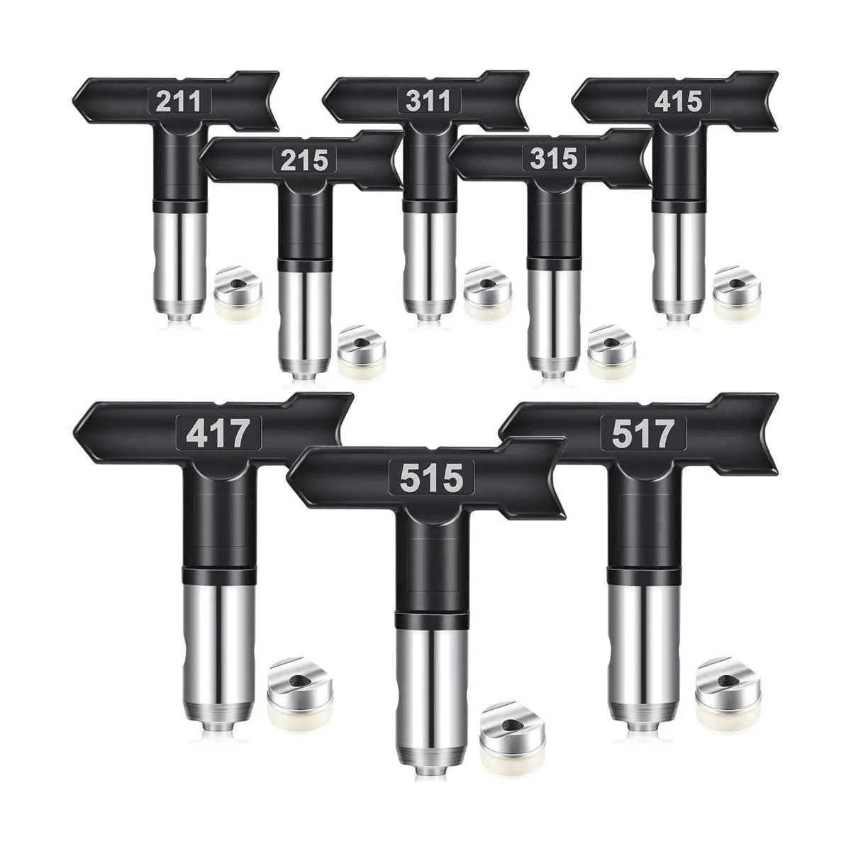 Juego de puntas de pulverizador de pintura: recibirás 8 tamaños diferentes de pulverizador de pintura negro sin aire, compatible con 211, 215, 311, 315, 415, 417, 515, 517, cada boquilla está equipada con un sello de punta, cantidades suficientes y varios tamaños para satisfacer tus diferentes necesidades