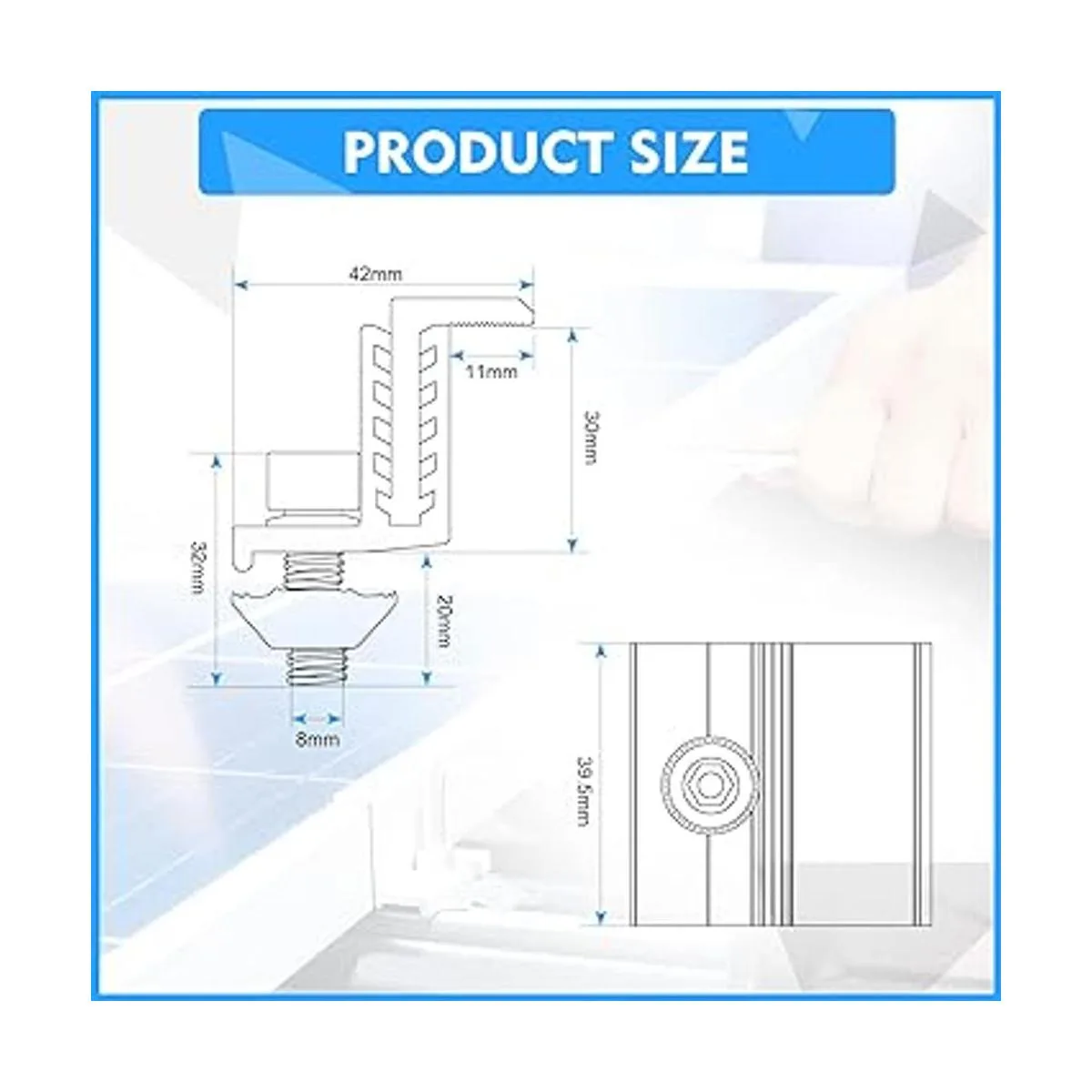 Fácil de instalar: estas abrazaderas de extremo ajustables se pueden ajustar de acuerdo con los diferentes paneles solares, solo necesitas instalarlas en la posición objetivo, ahorrando tiempo y energía, lo que es conveniente para instalar