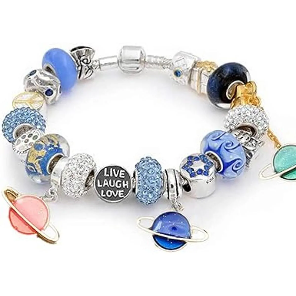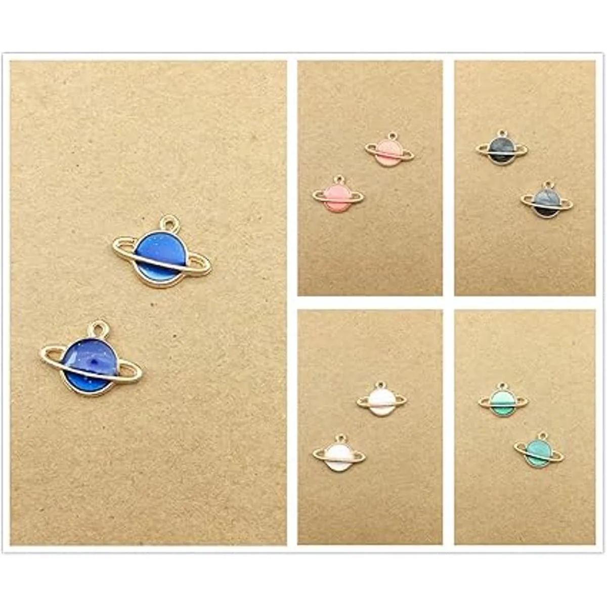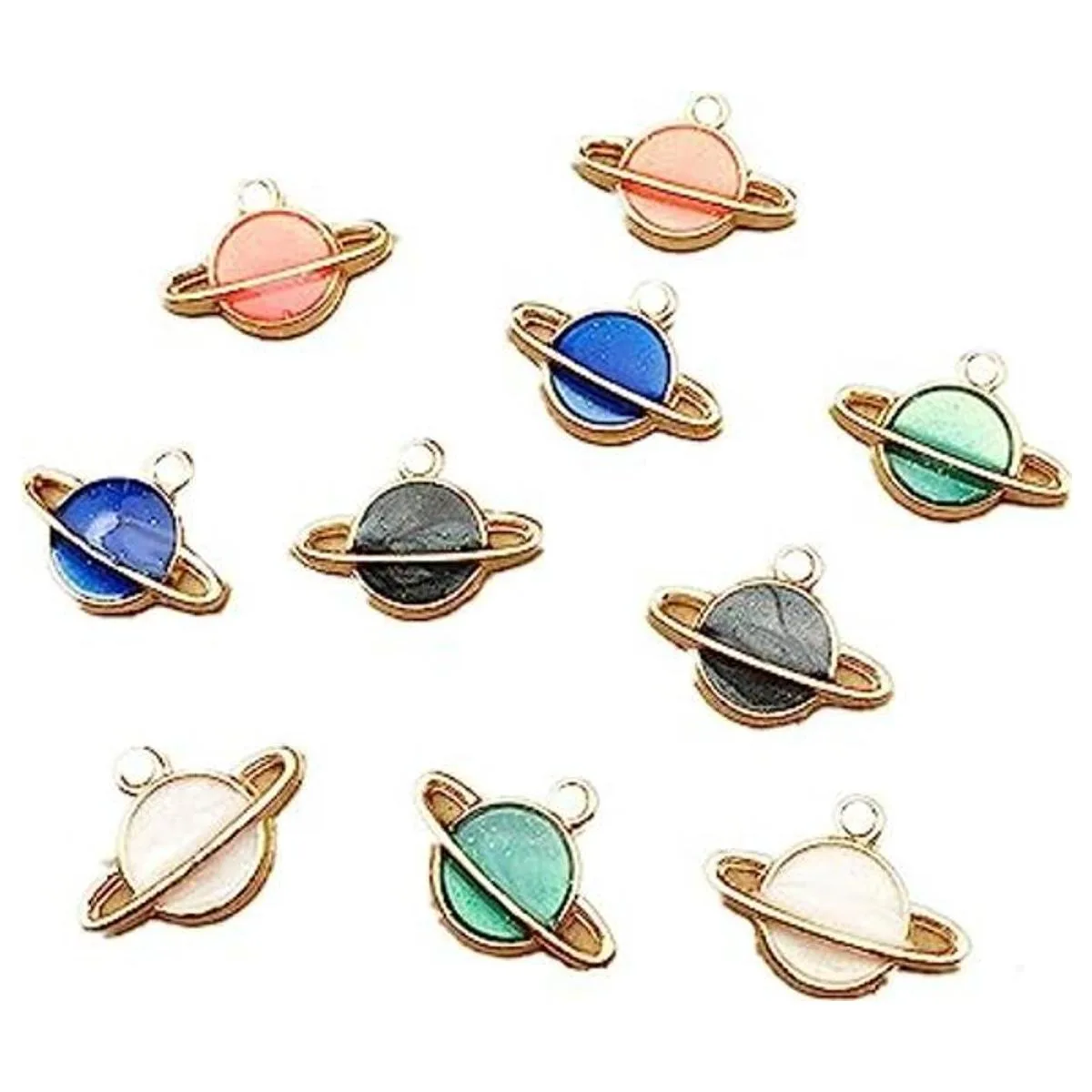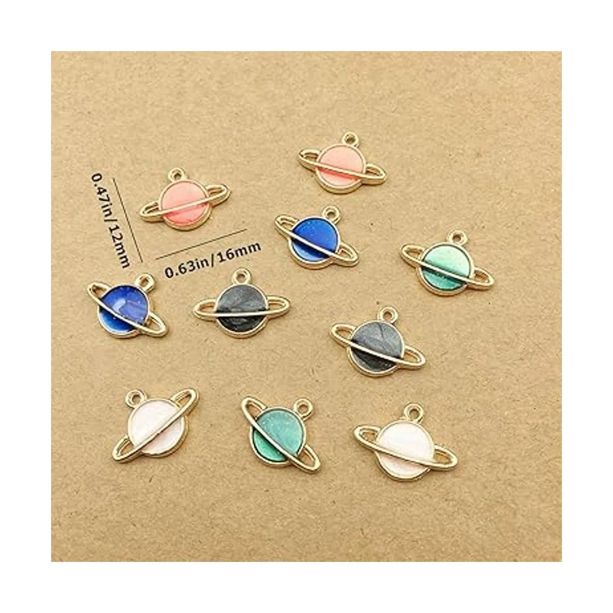 Zhiheng 10 dijes flotantes con temática del universo espacial y lentejuelas esmaltadas chapadas en oro, delicado adorno de cristal sintético, memoria de vida para collares, pulseras, tobillos, aretes, joyería, Plata