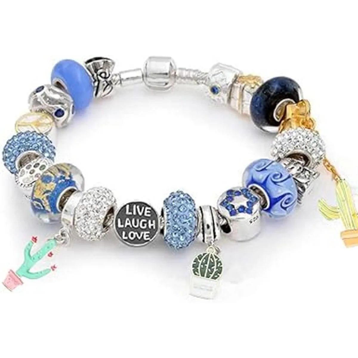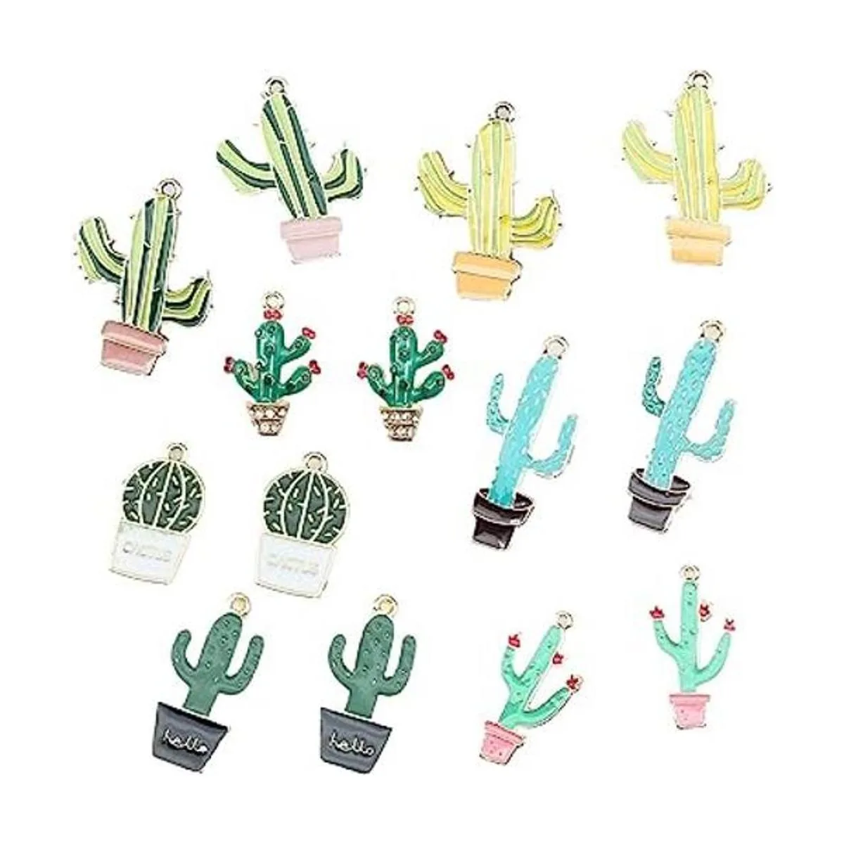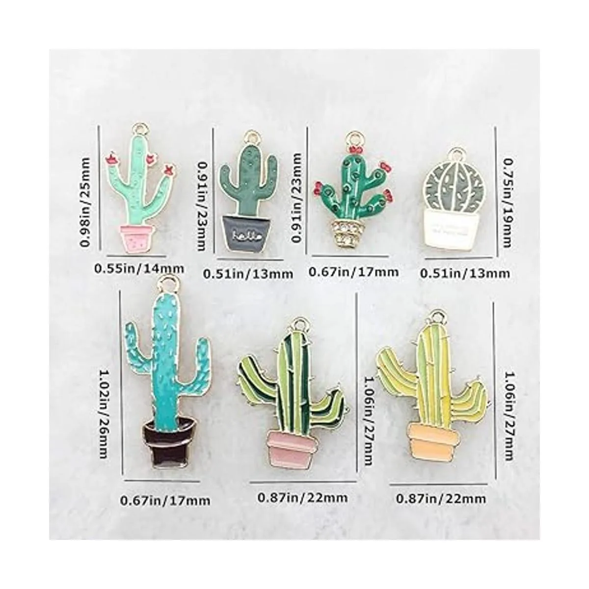 Zhiheng 14 dijes flotantes con diseño tropical de cactus, lentejuelas esmaltadas, colgantes chapados en ld, delicado adorno de cristal sintético, memoria de vida para collares, pulseras, tobillos, aretes, joyería, Plata