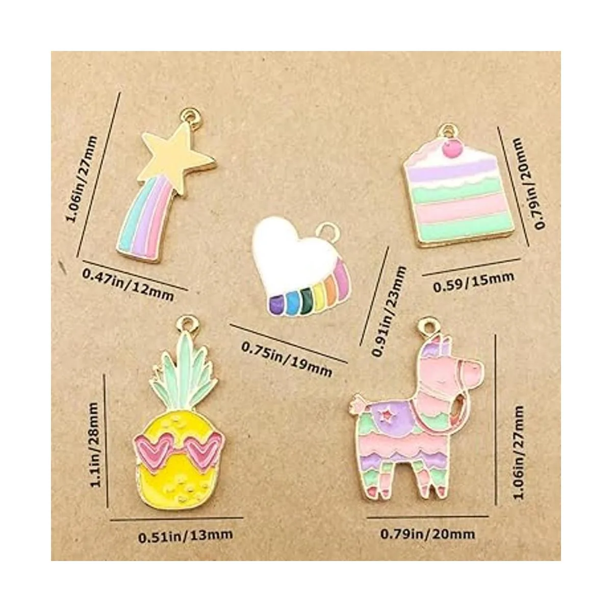 Zhiheng 20 piezas de bonito dije de pastel de piña y caballo esmaltado con lentejuelas chapadas en oro, delicado adorno para collares, pulseras, tobillos, joyería para hacer bricolaje, Plata