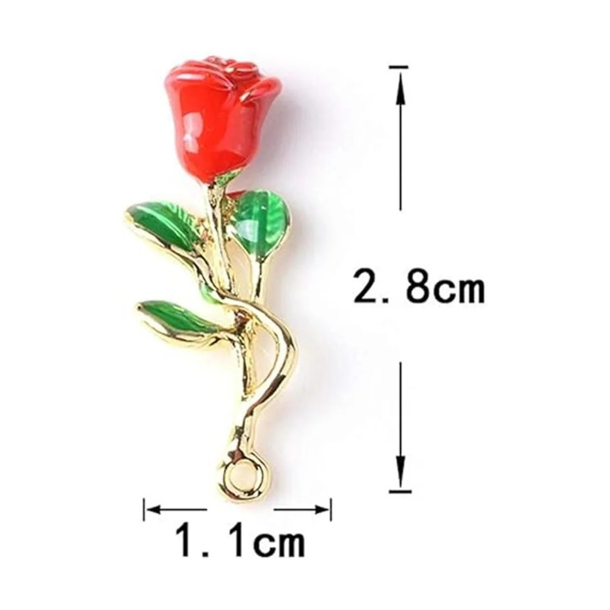 Colgantes de rosa 3D: 10 dijes de ramo de rosas rojas con bucles, el tamaño mini es de 1.1 x 0.4 in, perfecto para suministros de manualidades para niñas.