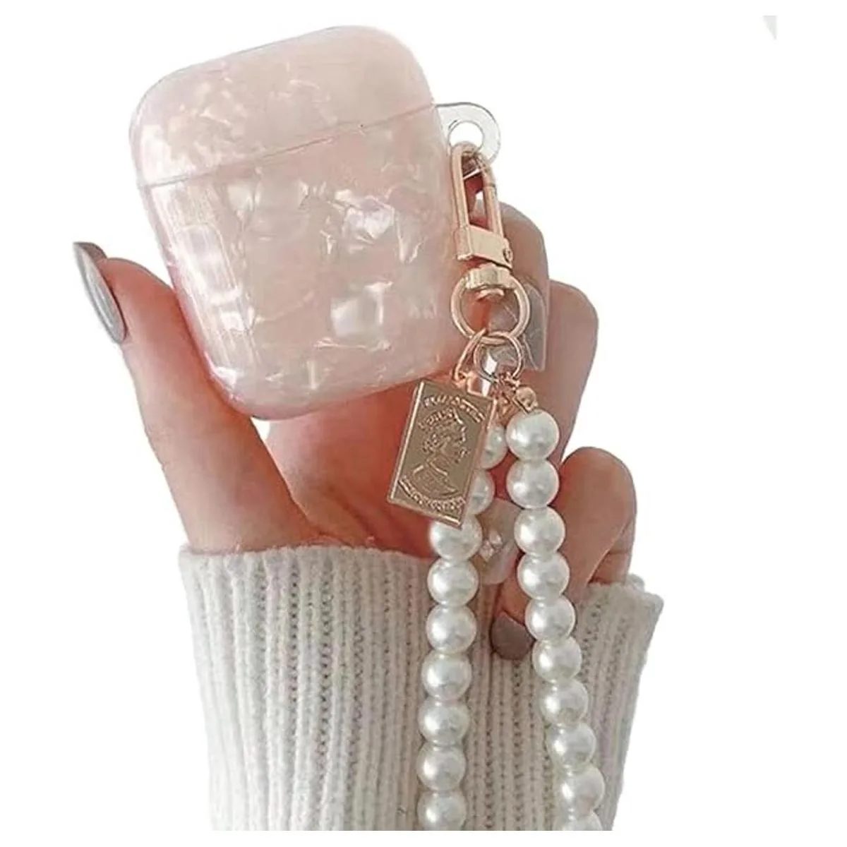 ZHIRUAN Funda protectora para Airpods con llavero de perlas, accesorios para Airpods compatibles con AirPods 2 y 1 rosa