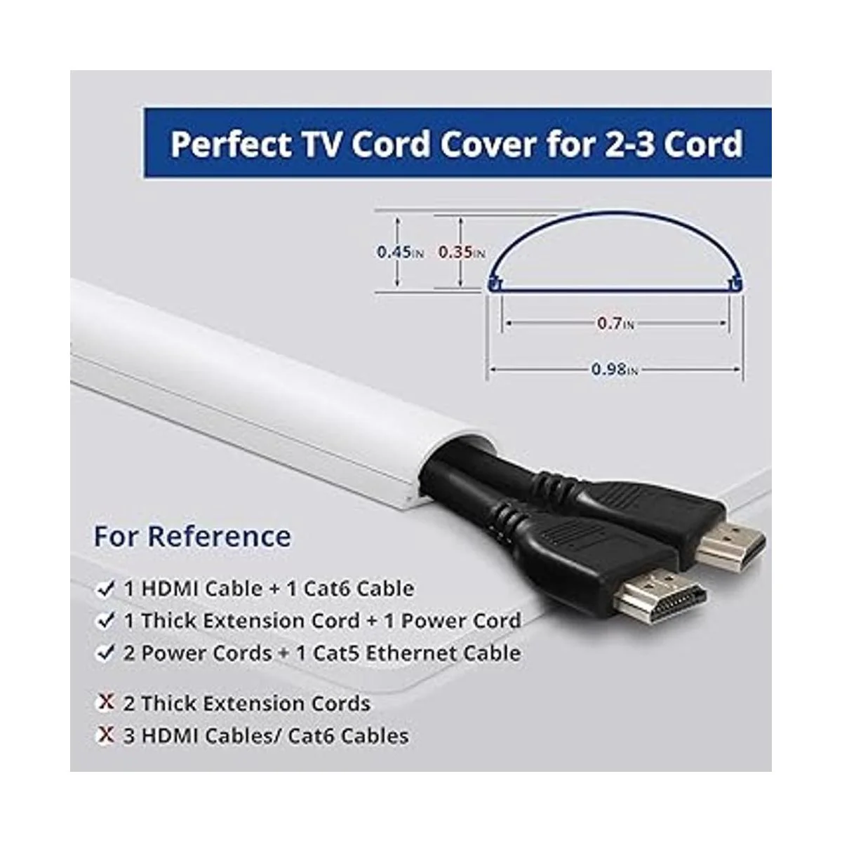 ZhiYo Ocultador de cables de TV de 78 pulgadas para TV montado en la pared, corrector de cable de pared autoadhesivo, cubiertas de alambre para pintar para cables, cubierta de cable blanco, conducto de cable medio redondo, 2 x 39 pulgadas de largo x 0.98 pulgadas de ancho x 0.45 pulgadas de alto