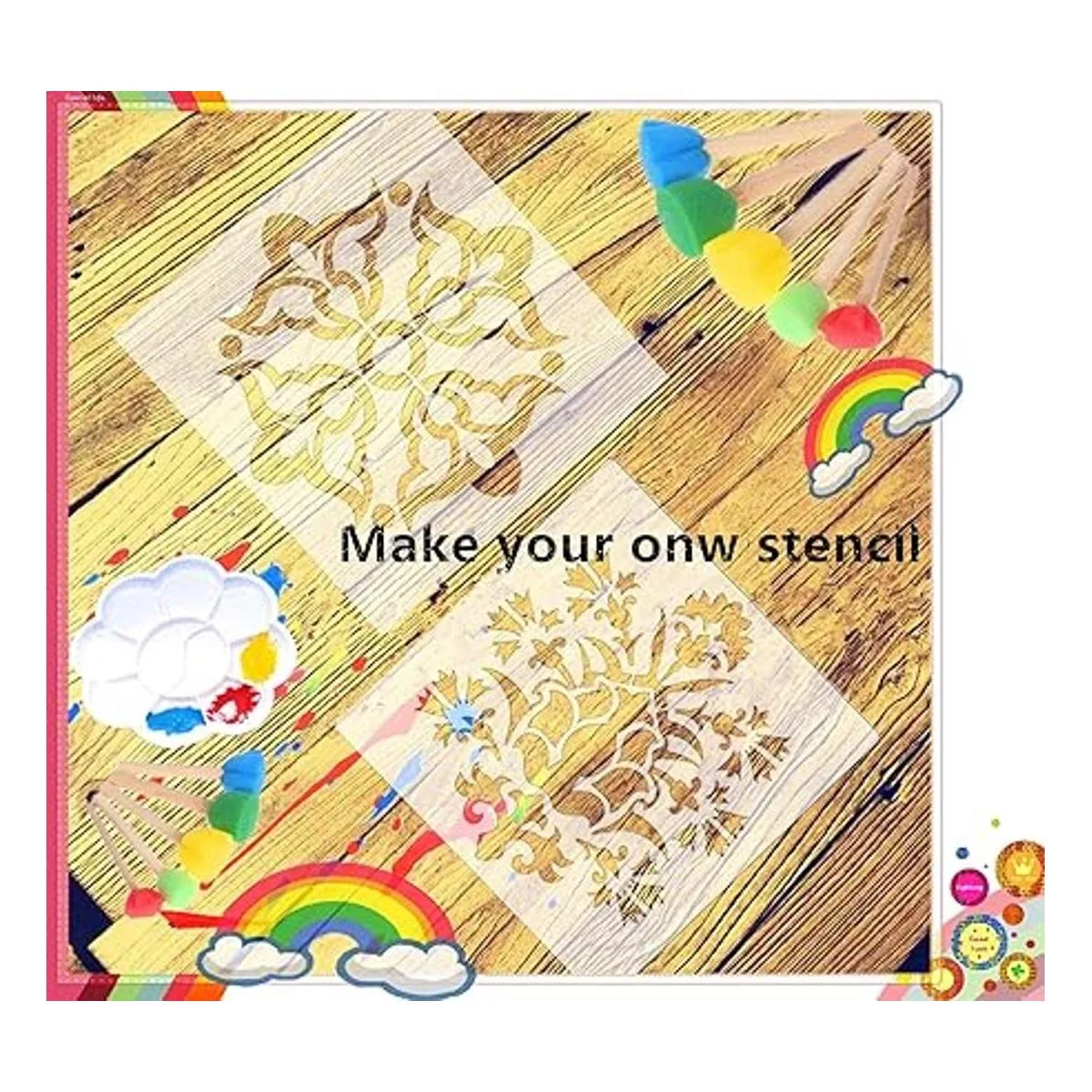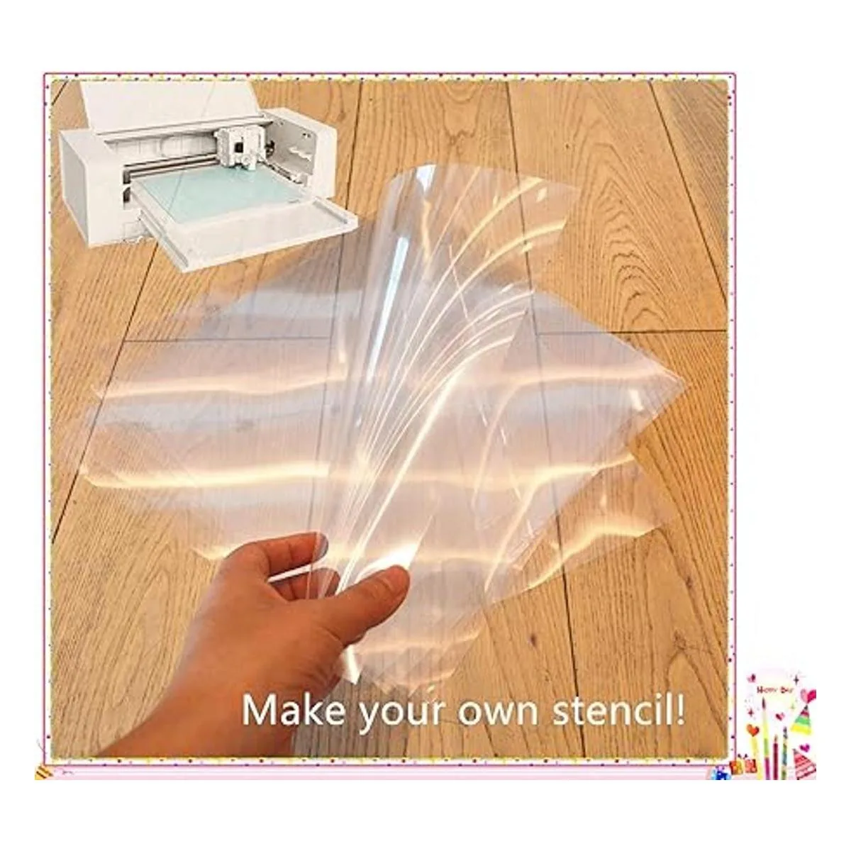 Haz tu propia plantilla. Las plantillas en blanco de acetato están hechas de mascotas de alta calidad respetuosas con el medio ambiente. El papel de mylar se puede utilizar para cortar la plantilla en la máquina de corte, haciendo tu propia plantilla personalizada.
