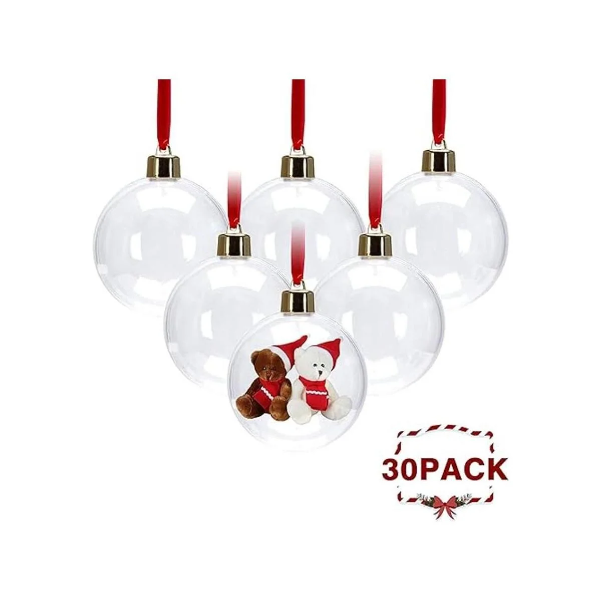 Incluye 30 bolas individuales de plástico transparente para adornos de Navidad de 2.756 in de diámetro, perfectas para tu Navidad.
