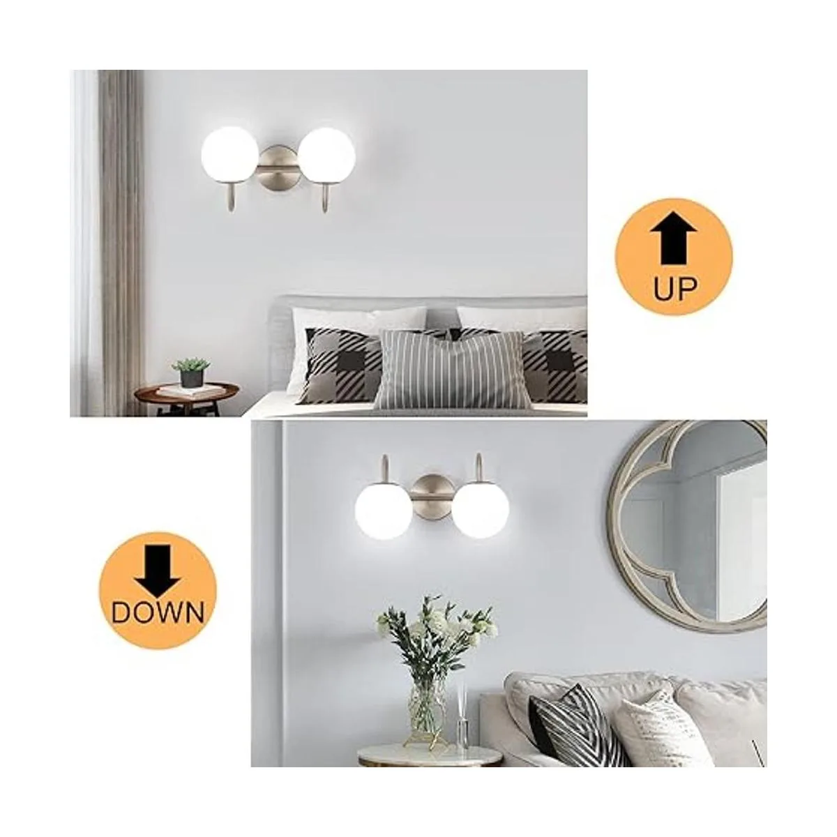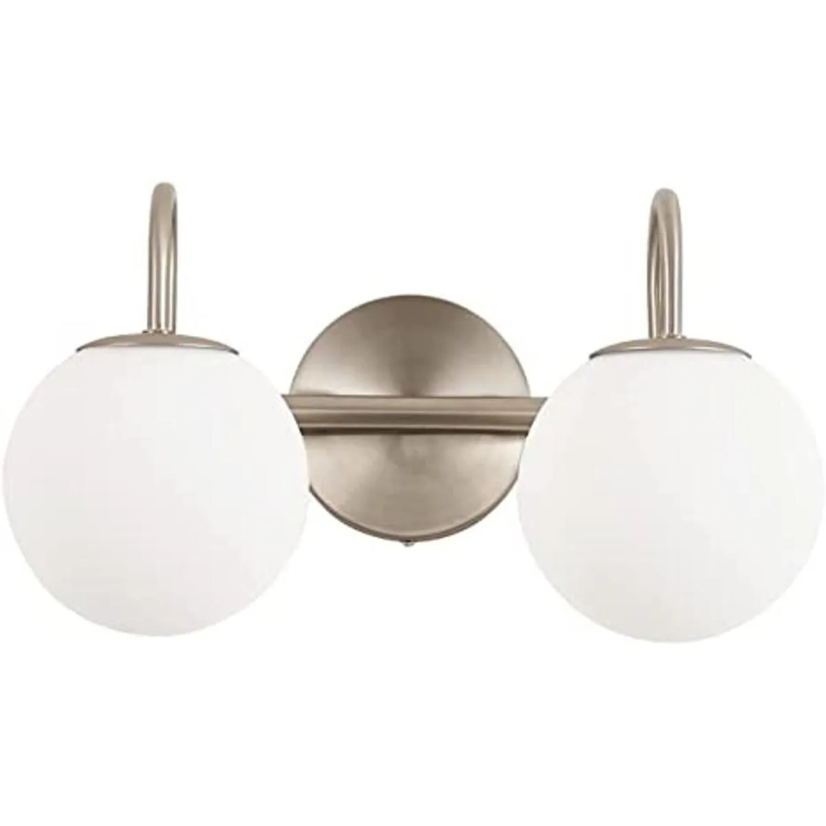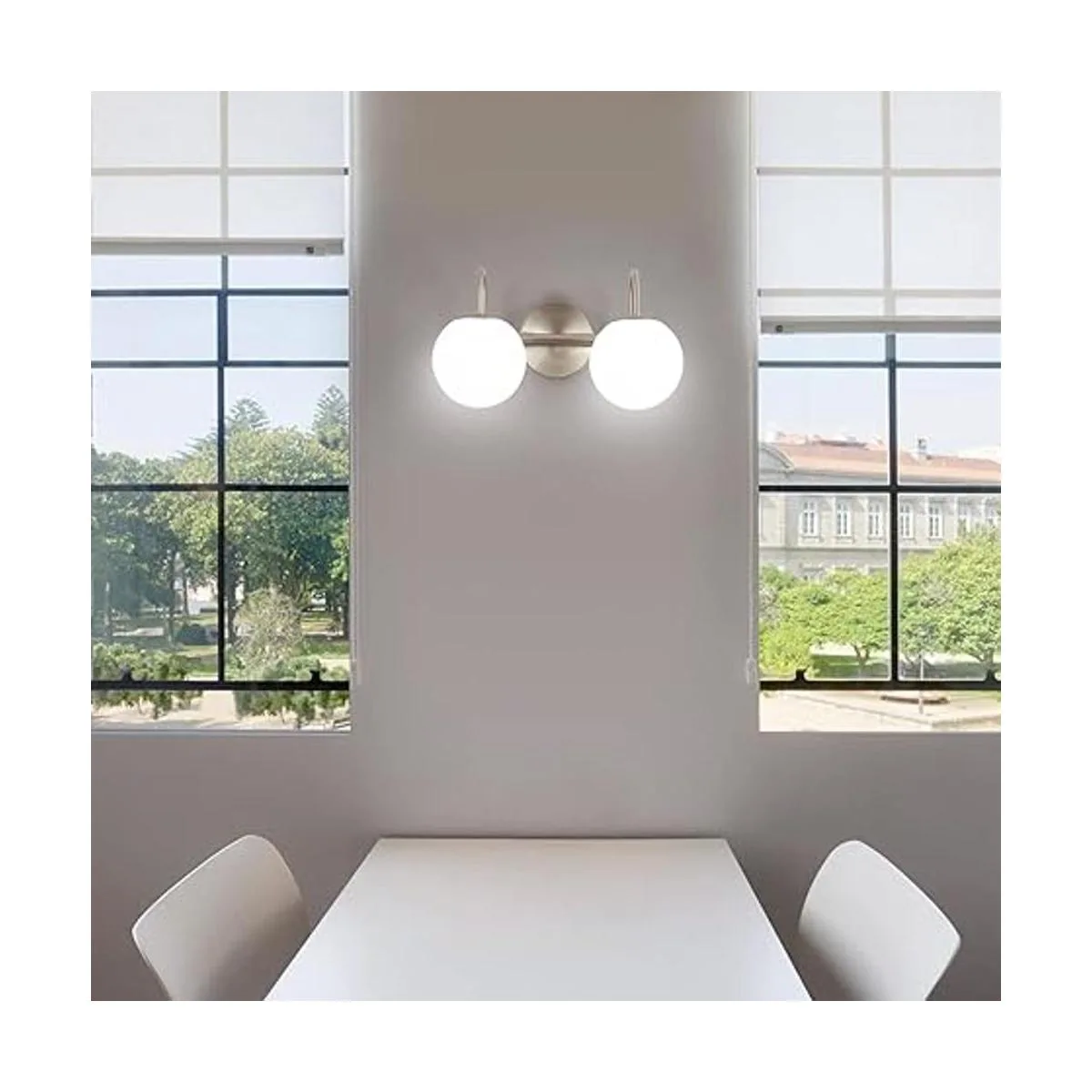 ZHUOER Lámpara moderna de tocador de baño de níquel cepillado, 2 luces, globo blanco leche, pantalla de cristal moderna para apliques de pared, luces de tocador sobre espejo excluye bombilla G9
