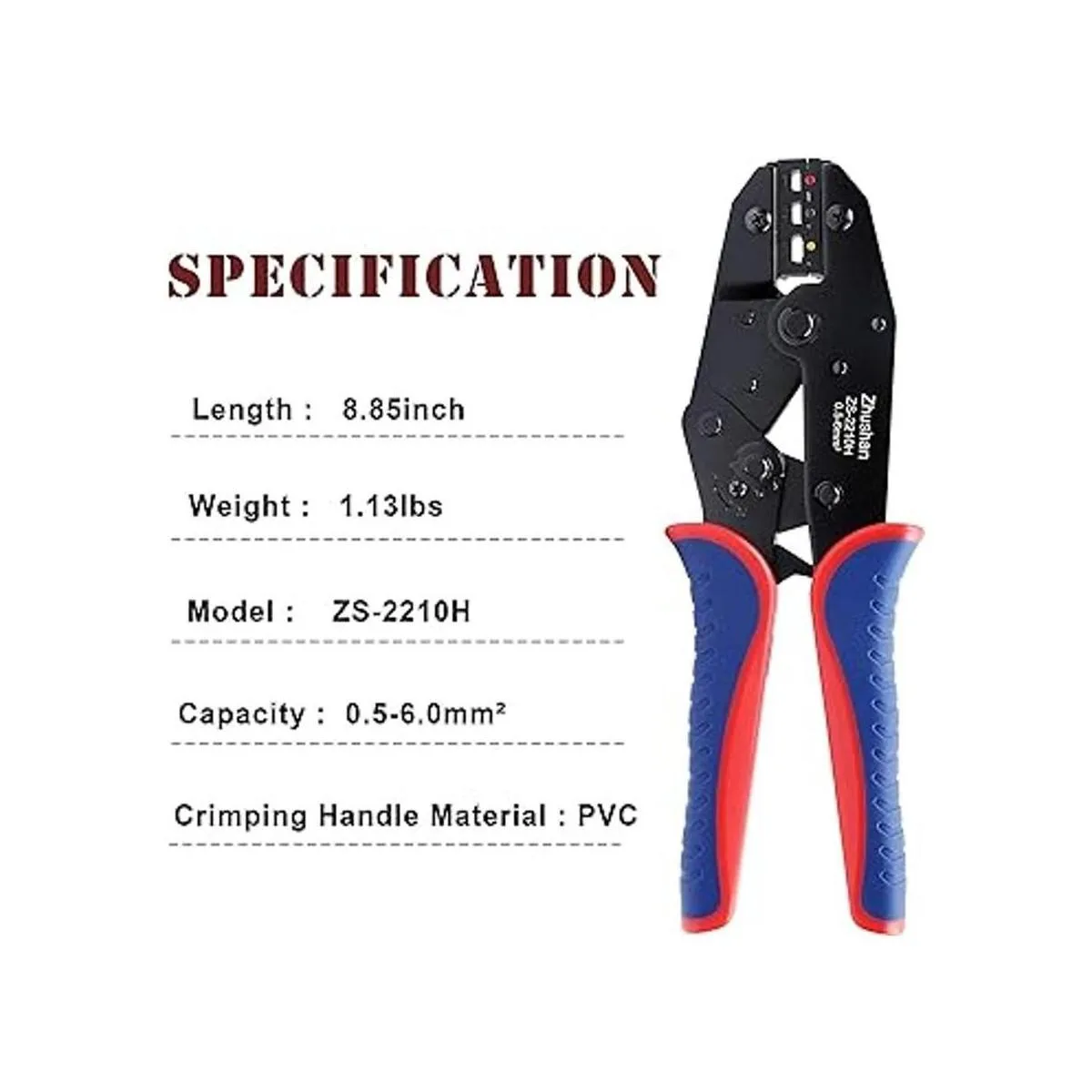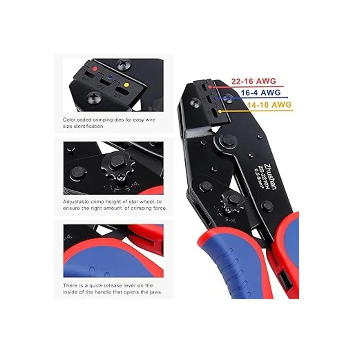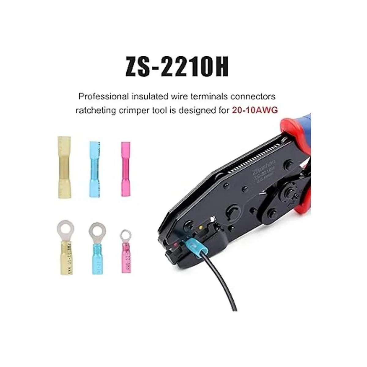 Zhushan Engarzadora de alambre para conectores termoencogibles, conectores de terminal de alambre de trinquete, herramienta de prensado termorretráctil para conectores de nailon aislado y cables eléctricos AWG2210 0.56mm