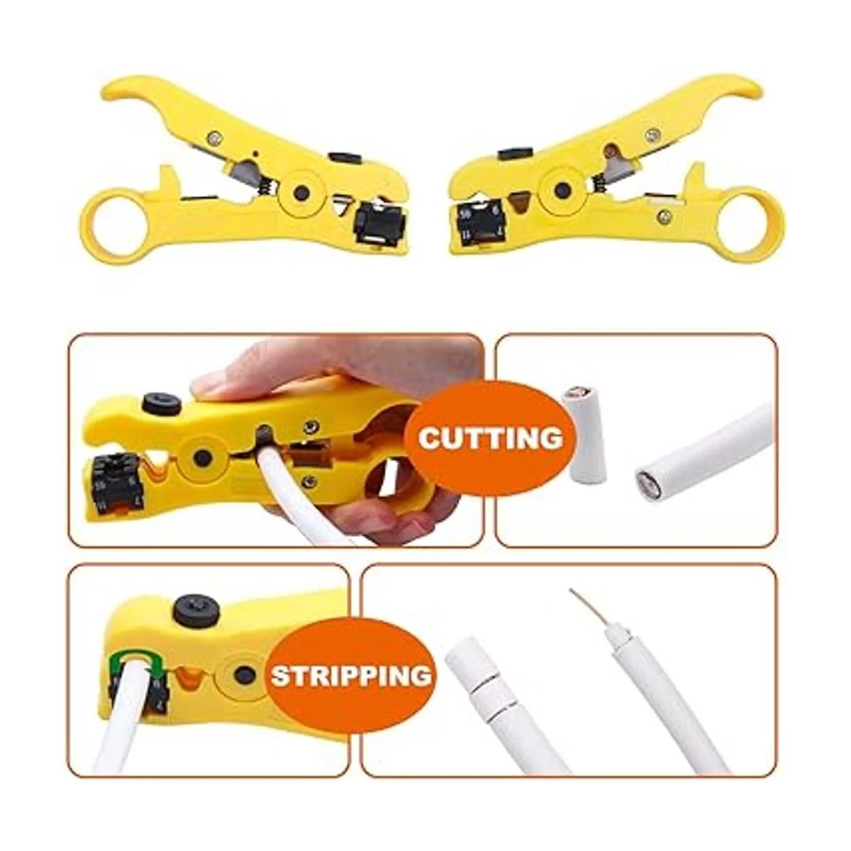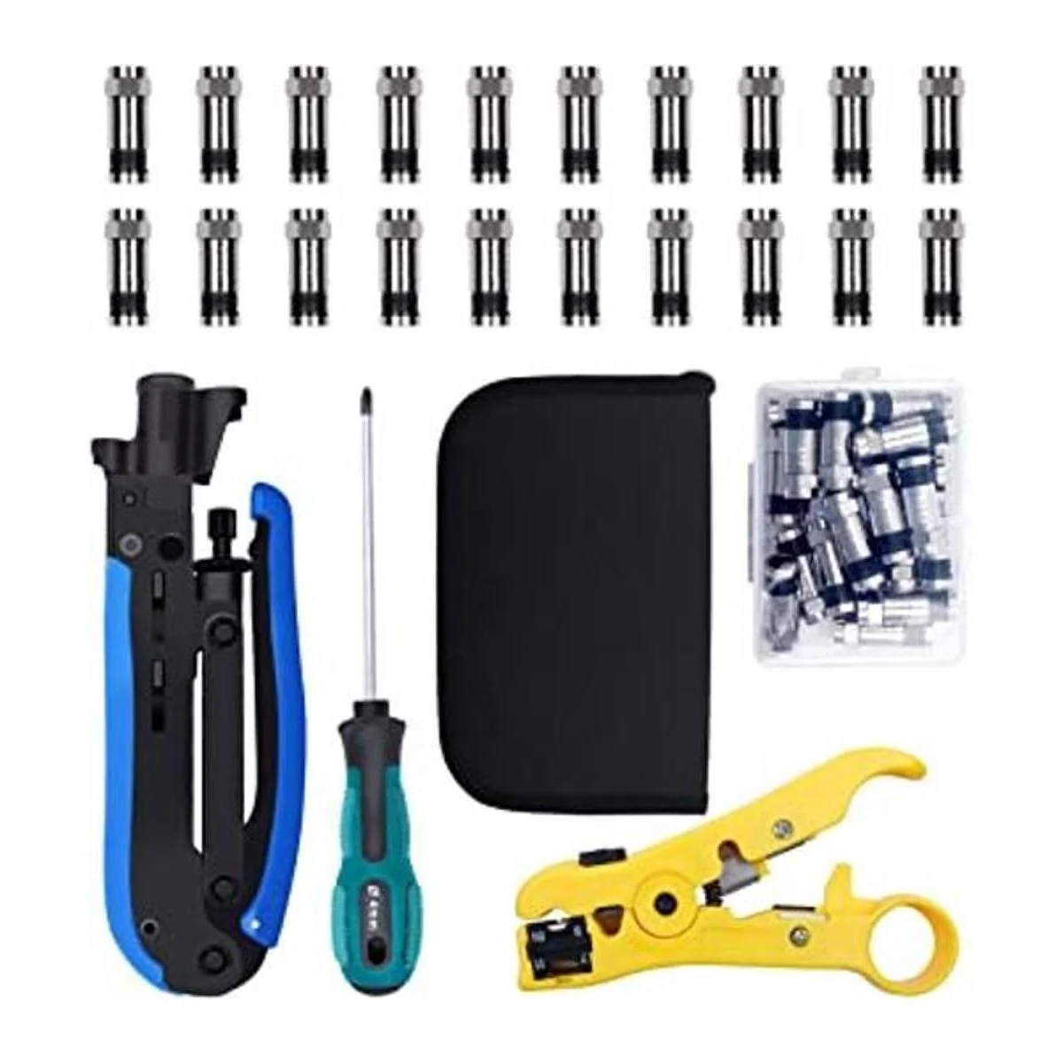 Zhushan Kit de herramientas de compresión coaxial, juego de crimpadoras de cable coaxial con 20 conectores de compresión F, pelacables coaxiales ajustables RG6 RG59 RG11 755 757