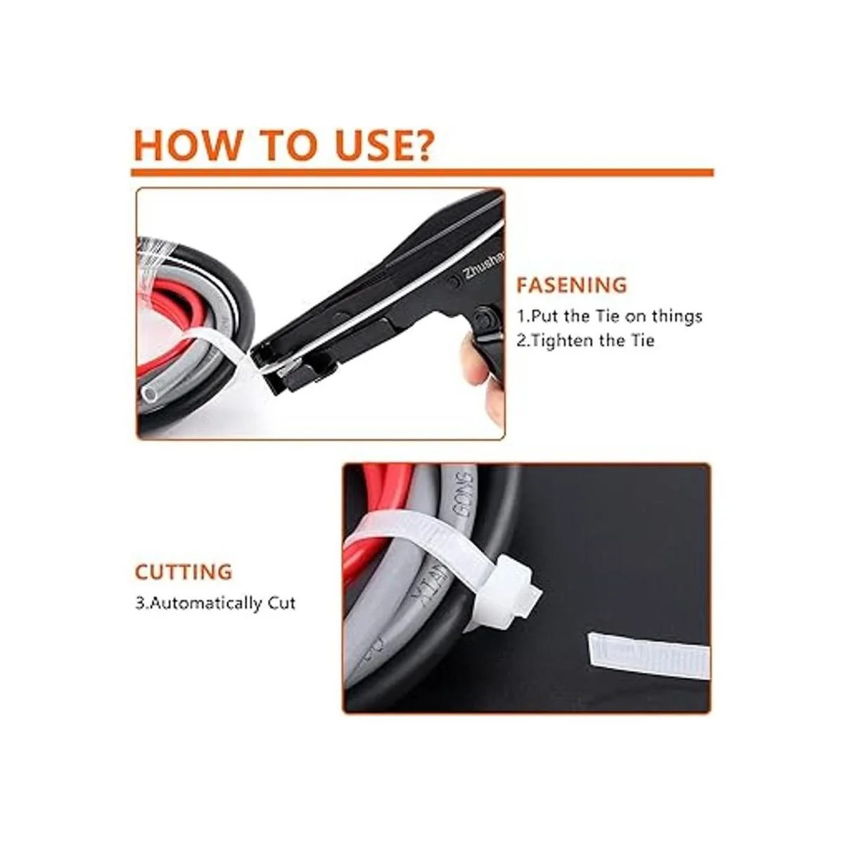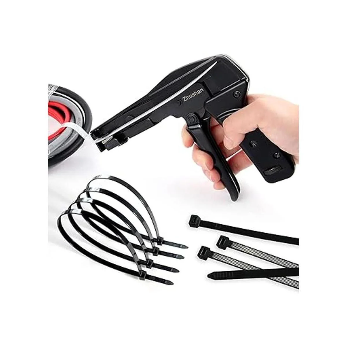 Zhushan Pistola de atadura con cremallera, pistola de sujeción para cables, herramienta de envoltura de corbata con tensión ajustable para sujetar y cortar la brida de nailon