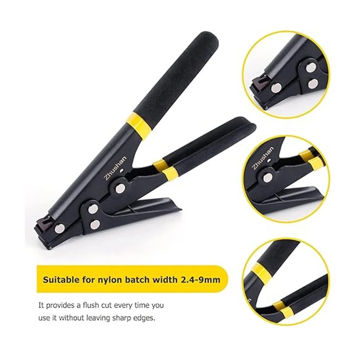 Rango de corte: esta de brida de cable hará un ancho de brida de nailon de 2,4 a 0.354 in. Proporciona un corte empotrado cada vez que se utiliza para lograr una instalación limpia y profesional sin dejar bordes afilados