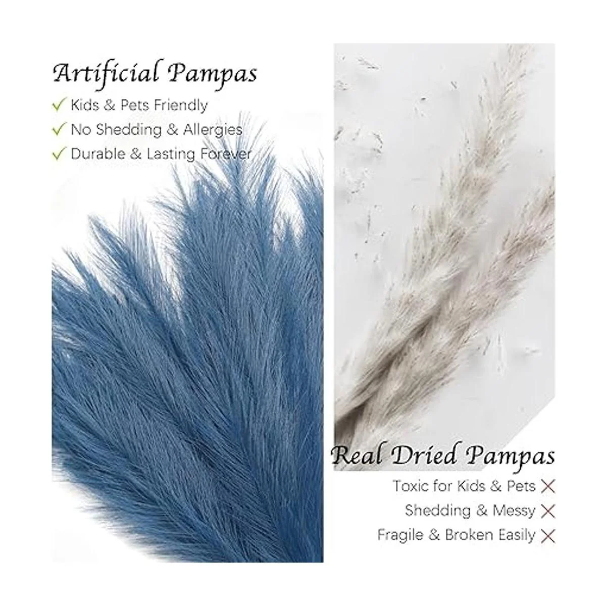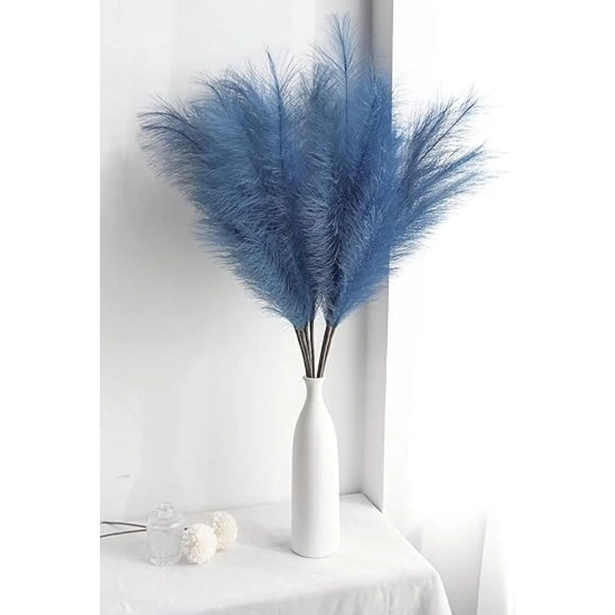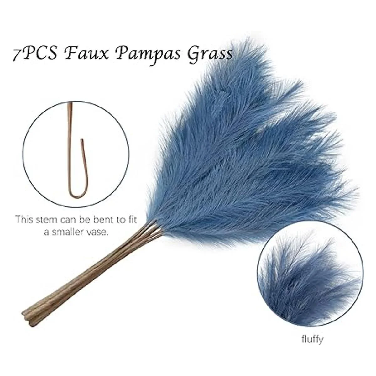 ZIFTY 7 unidades de hierba de la pampa artificial de 38 pulgadas3.1 pies de alto y esponjoso para rellenar el florero, decoración bohemia para la sala de estar, cocina, oficina azul