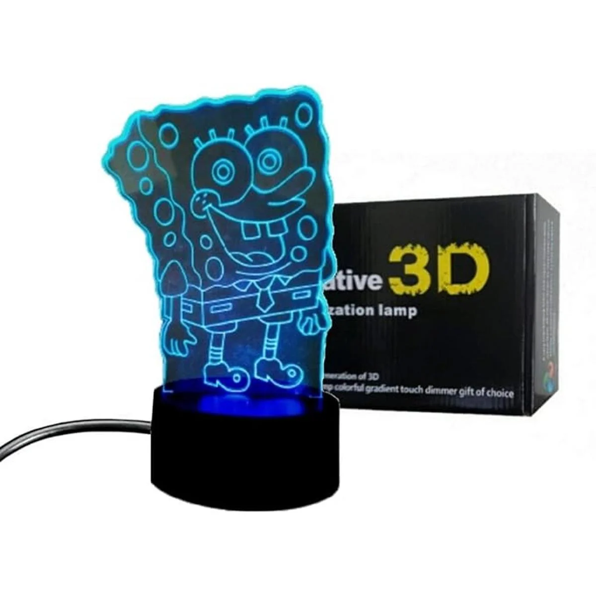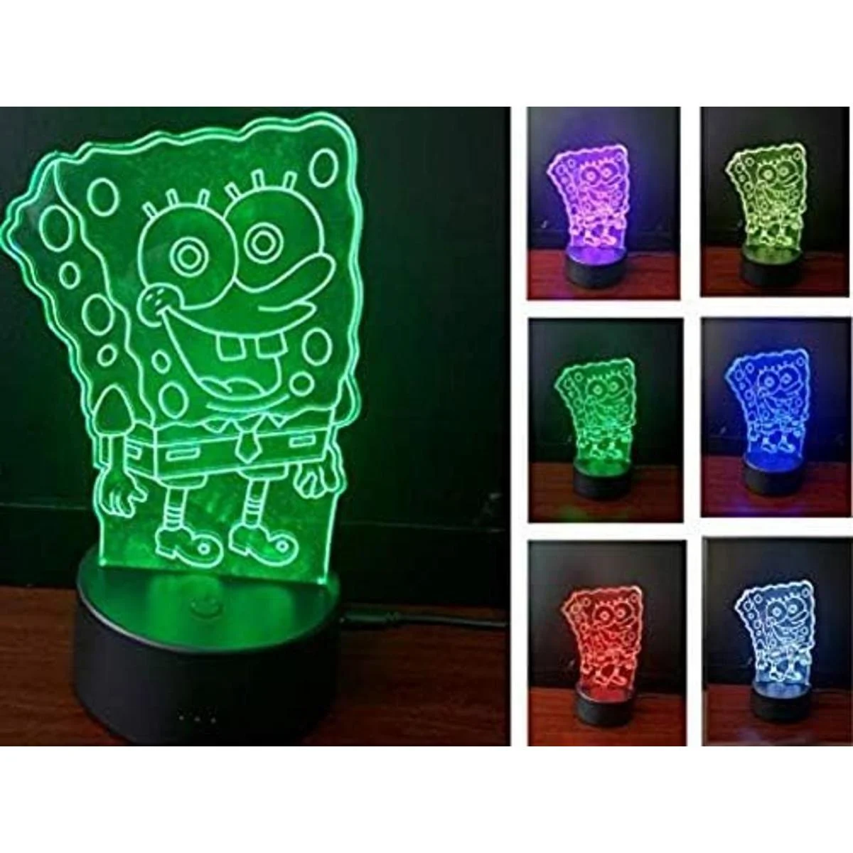 Zillion Craft Esponja Bob Forma de dibujos animados 3D lámpara de ilusión creativa Cable USB o batería compatible con el modo de sensor táctil de cambio de color. La mejor decoración del hogar y lámpara de habitación para niños como juguete o regalo.