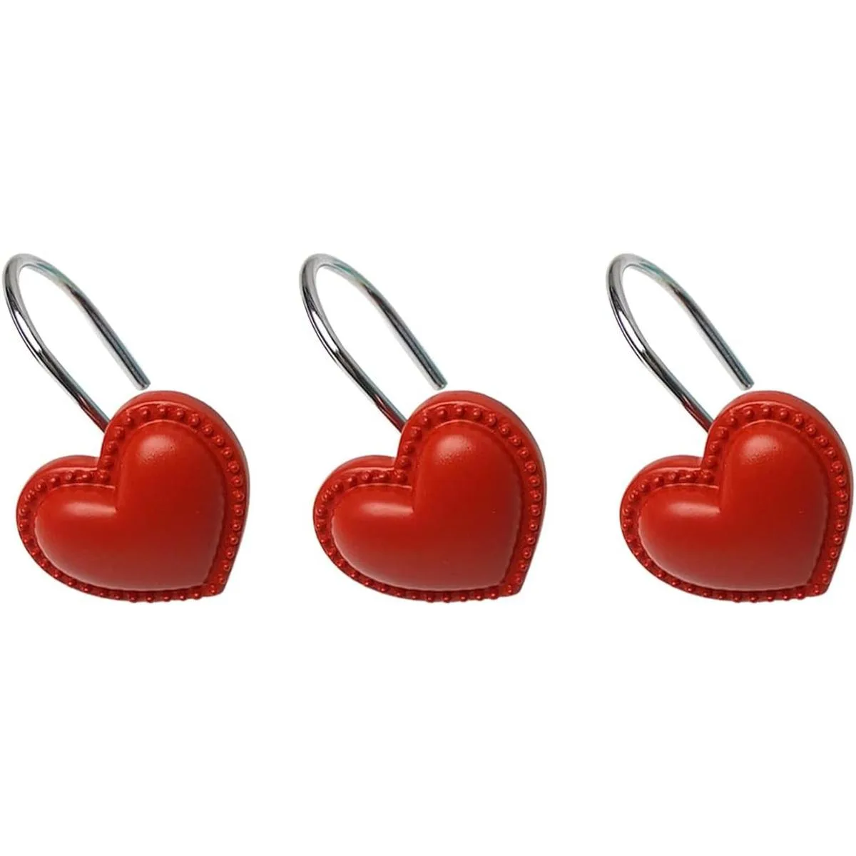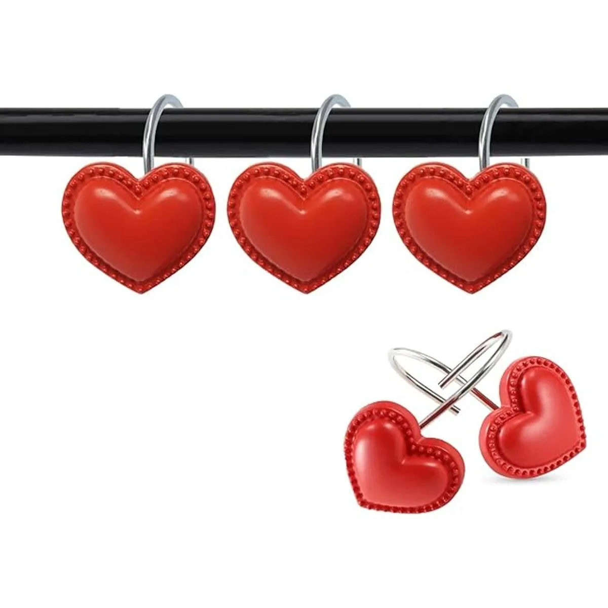 ZILucky Set of 12 Red Heart Shape Shower Curtain Hooks, Valentines Day Theme Theme, Home Bathroom Decor Accessories Red