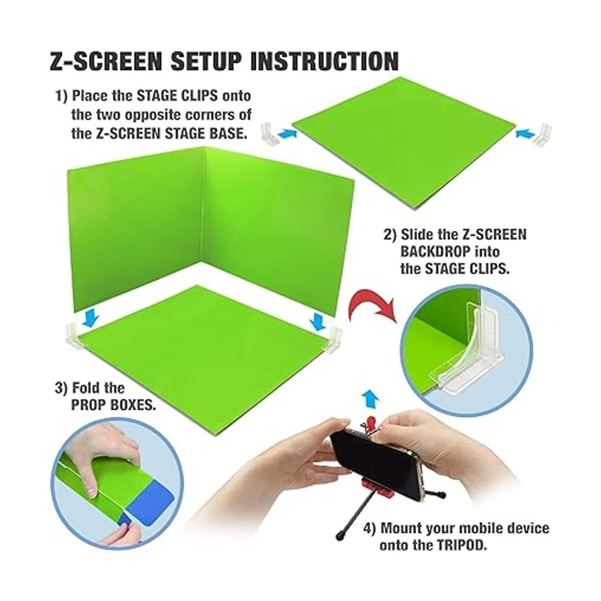 Zing Klikbot Zanimation Studio Incluye 2 Klikbots, soporte para teléfono y pantalla de fondo de 2 lados, para edades de 6 años en adelante