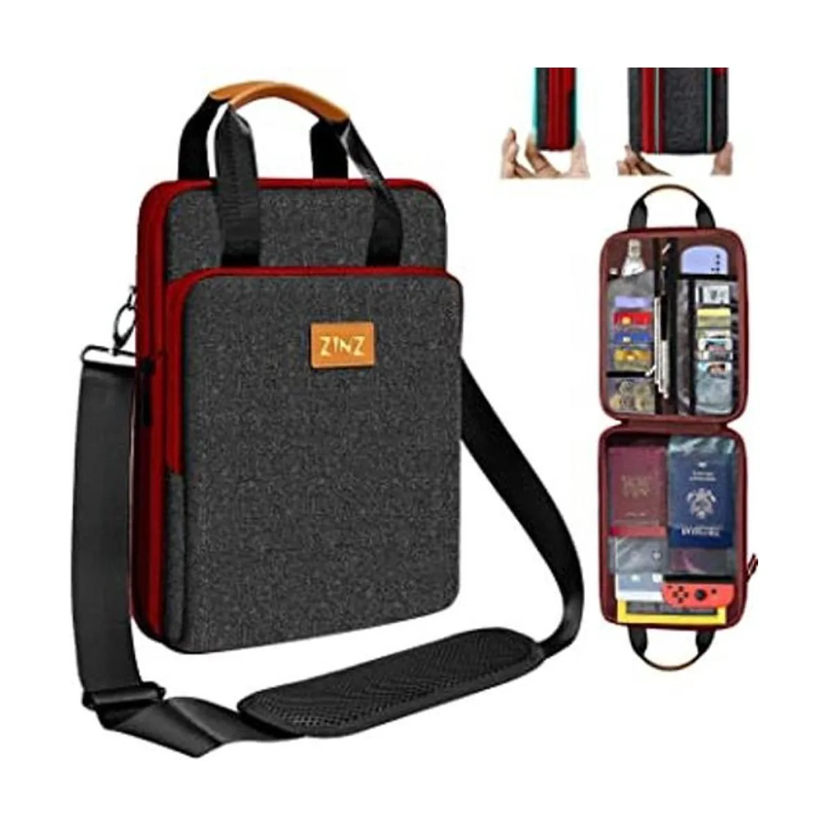 ZINZ Funda de hombro para laptop de 12.9 a 13 pulgadas con capacidad variable y correa, funda de transporte para viajes con valiosos y compartimentos para cuadernos, funda ecológica y resistente al agua, color negro y rojo
