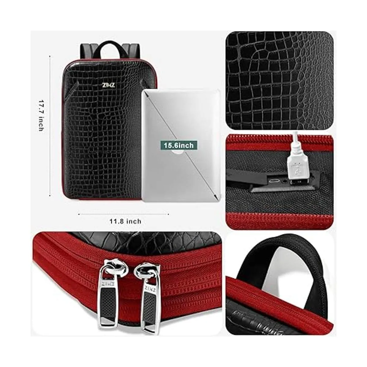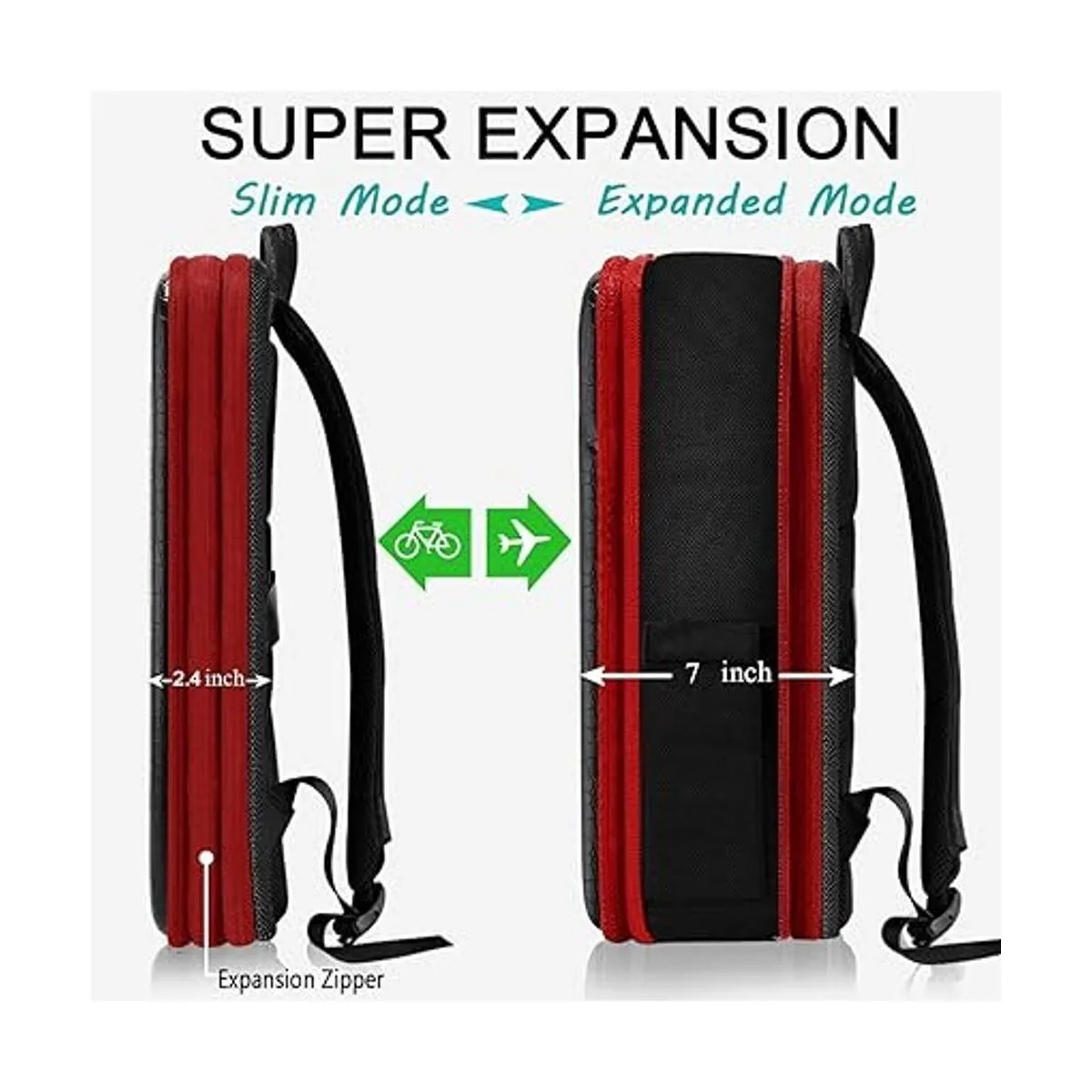 ZINZ Mochila delgada para laptop de 15.6 pulgadas con capacidad variable y puerto USB, mochila de negocios, mochila de viaje, mochila de viaje, NegroRojo, 15.6 pulgadas, Mochilas de viaje