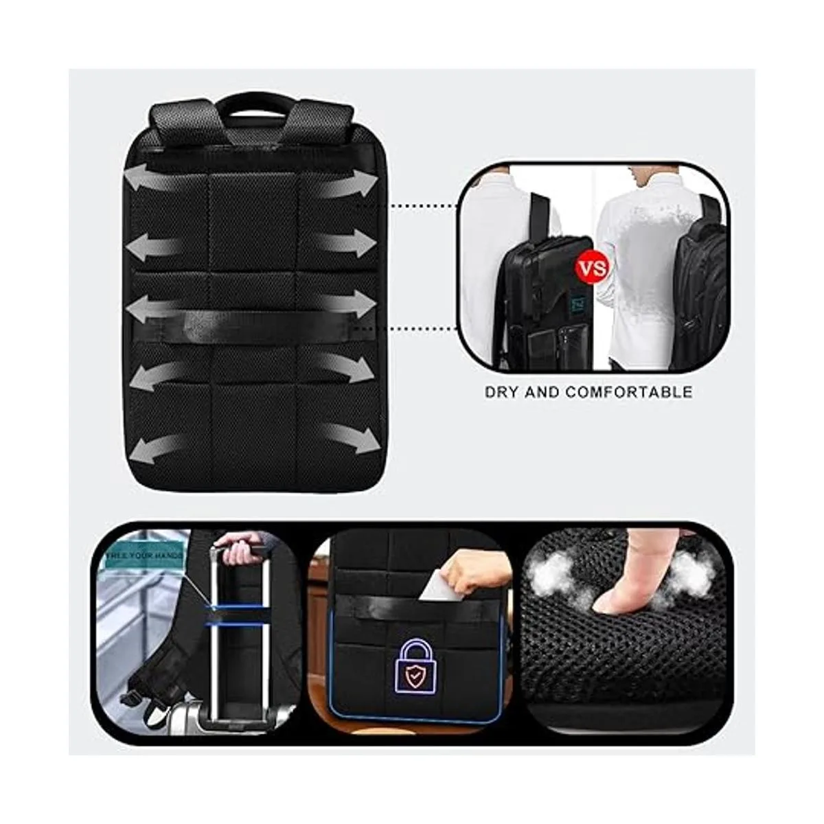 Protección y seguridad: la mochila de negocios posee muchos compartimentos independientes. El compartimento para portátil con esponja alrededor protege tu portátil contra caídas y derrames, como la bolsa de aire del coche. Un compartimento antirrobo oculto en la parte posterior protege tus objetos valiosos de los ladrones. Perfecto para negocios y escuela como regalo de viaje para hombres y mujeres.