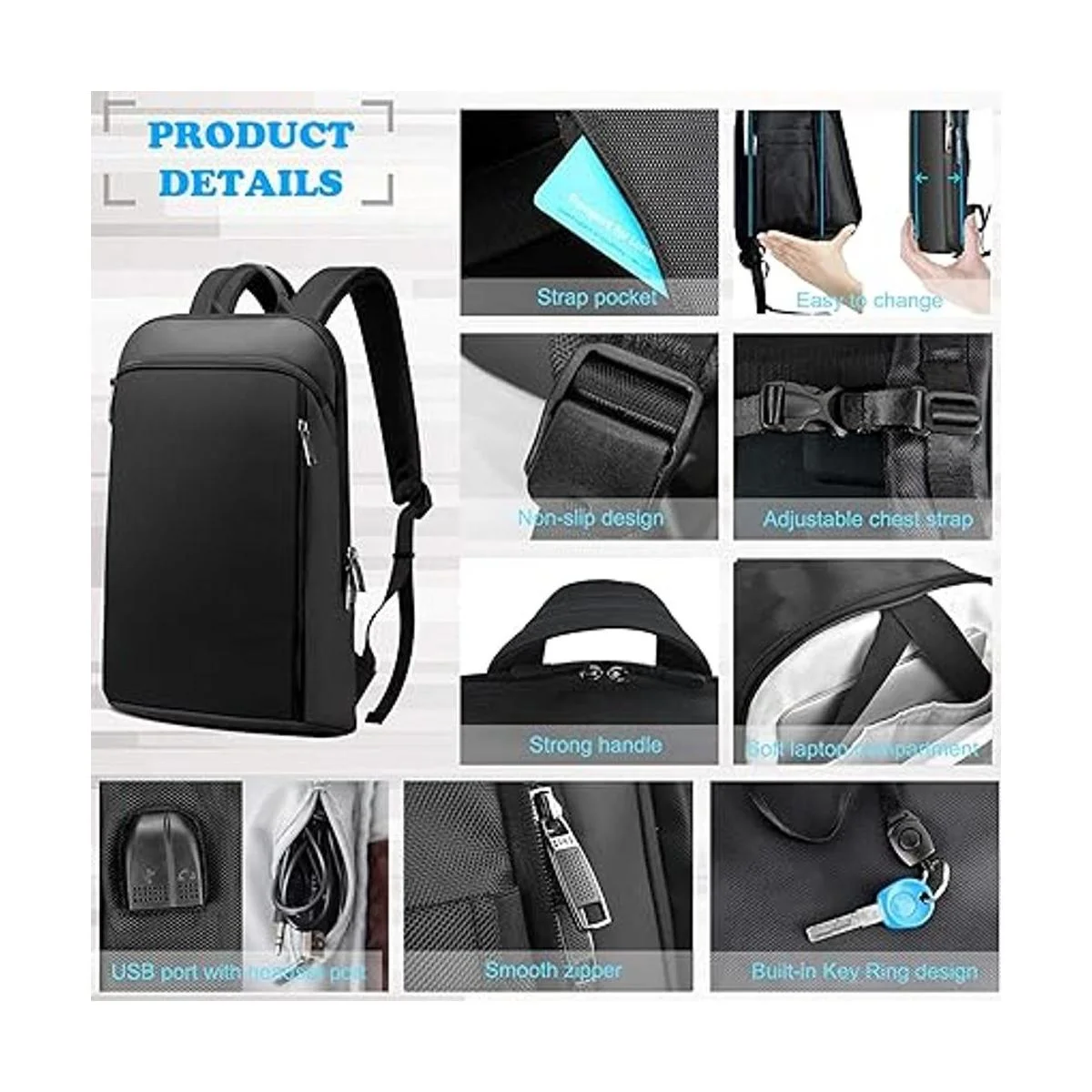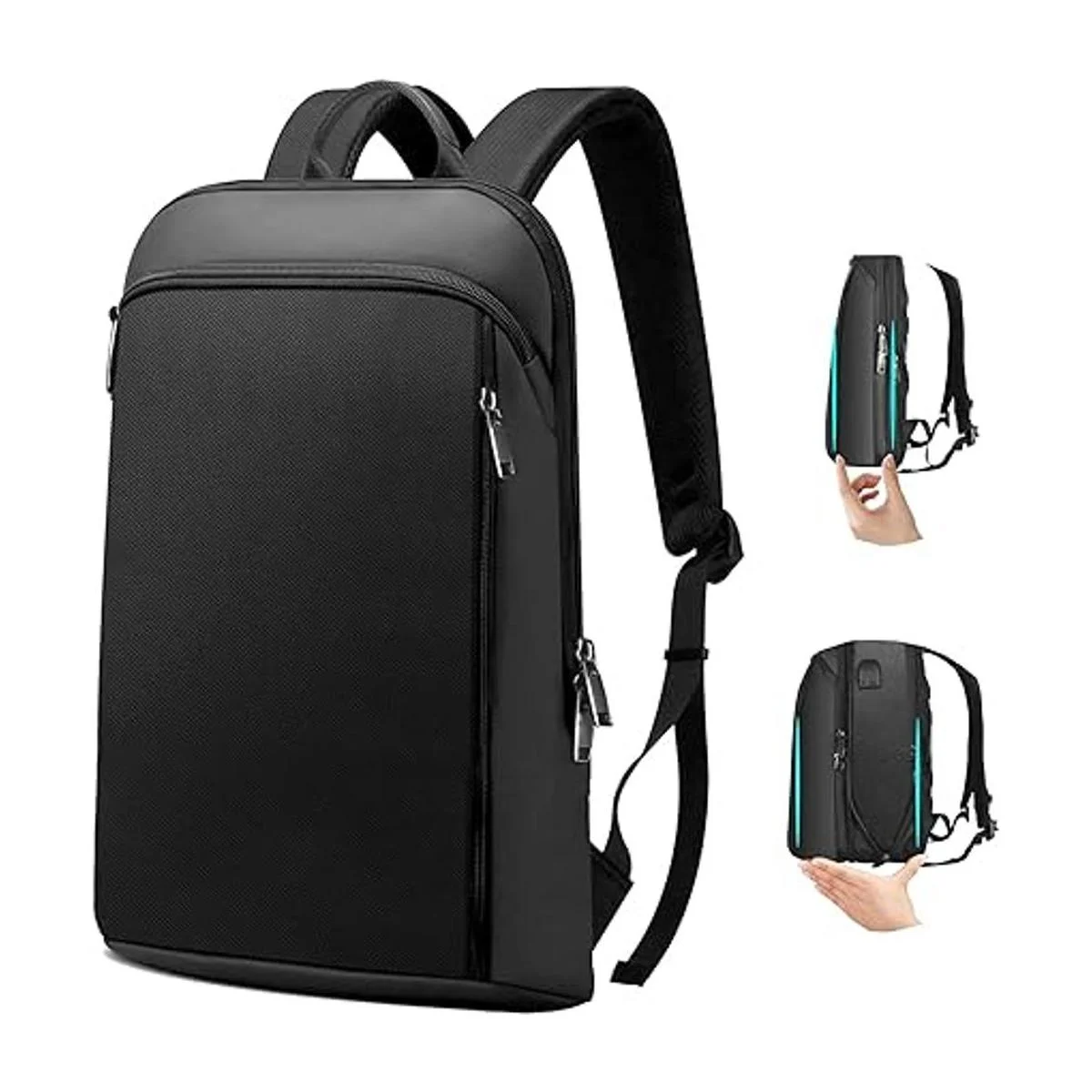 ZINZ Mochila delgada y expandible para laptop de 15, 15.6, 16 pulgadas, antirrobo, bolsa de viaje de negocios con USB, mochila multiusos de gran capacidad, mochila universitaria para hombres y mujeres, color negro profundo