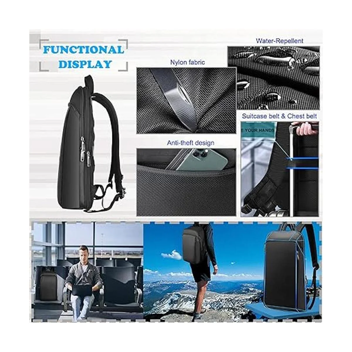 Diseño delgado y ampliable: la capacidad variable para una aplicación flexible. La mochila de viaje para portátil posee dos modos para viajes de viaje y negocios, son fáciles de transformar entre ambos. 13 litros, el modo delgado para caminar tanto por el hogar como por la escuela u oficina como una mochila, mantiene tu estilo elegante y capaz en cualquier momento. 24 L, el modo ampliado de la gran capacidad para más carga para satisfacer tu camping, senderismo y viaje nocturno. Regalo ideal para profesores y estudiantes universitarios.