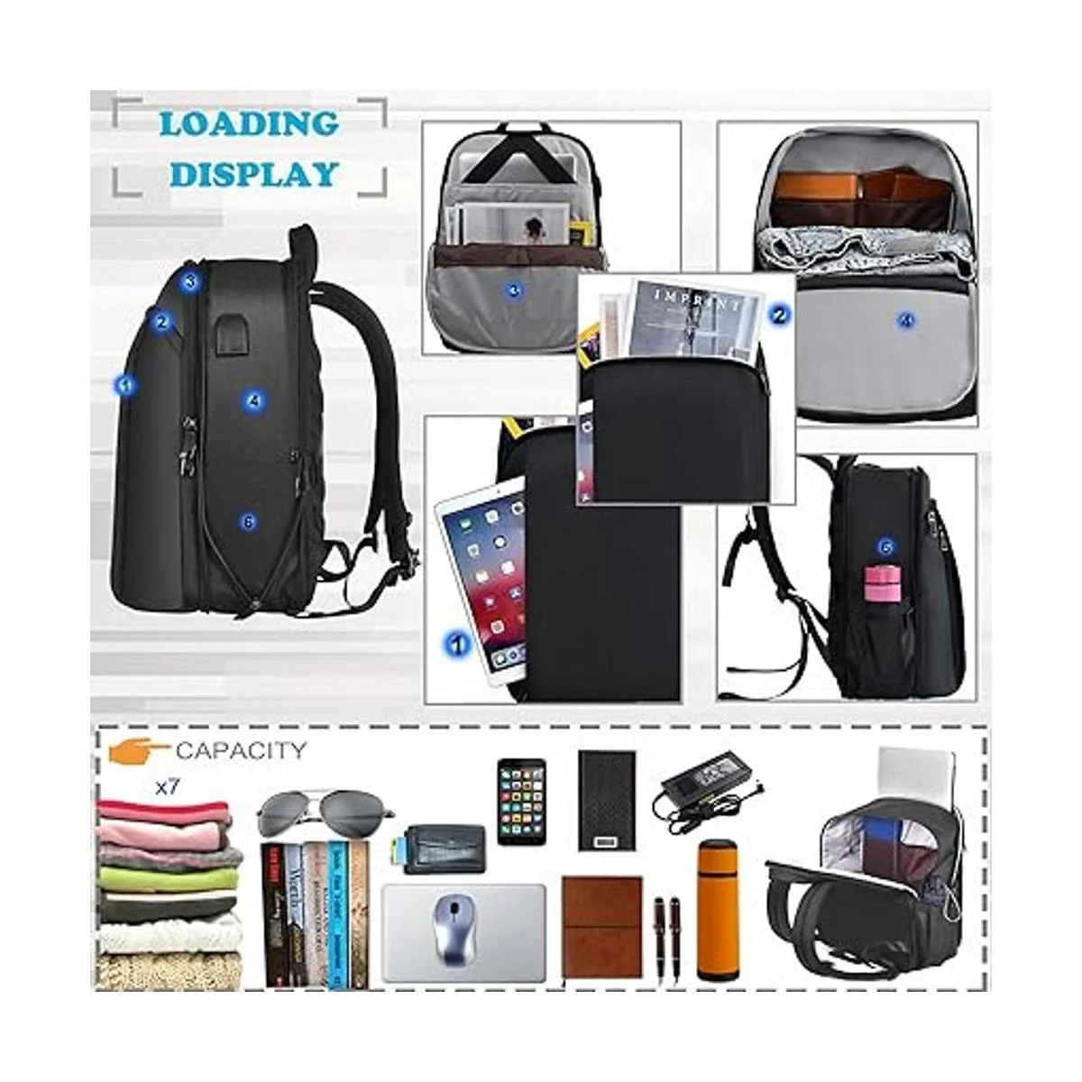 Práctica y práctica: la mochila de viaje tiene 12 bolsillos independientes para que tus artículos estén bien organizados. Diseño exclusivo aprobado por la TSA y tamaño para viajes en avión. Puerto USB externo y auriculares con cable de carga integrado que ofrece una conexión conveniente a tu teléfono celular y otros dispositivos electrónicos. La mochila para mujer será un regalo ideal para aniversario, cumpleaños, regalo de Navidad.