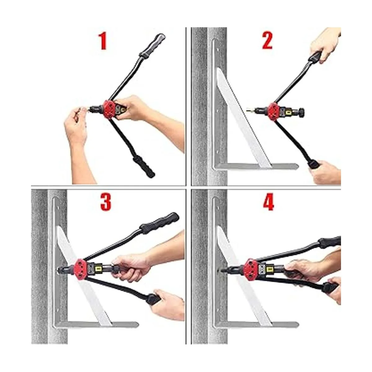 Las asas de acero al carbono de alta resistencia de 3/25 pulgadas hacen que la de tuerca remache sea más resistente y duradera, 13 especificaciones para mandril intercambiable para satisfacer las necesidades de trabajo