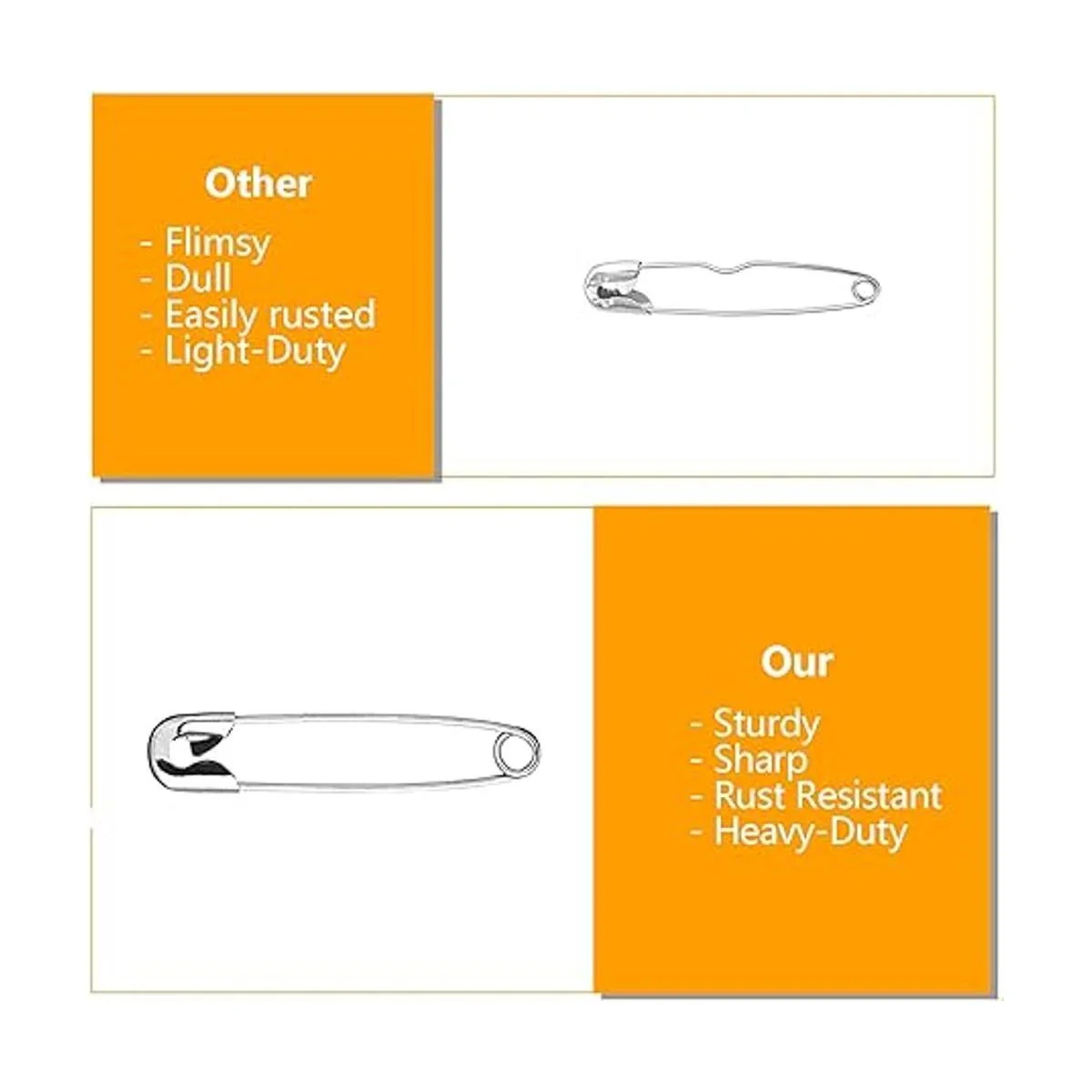 Ampliamente utilizado: estos pines de seguridad se aplican para el hogar, pines de costura, moda, pines de manualidades, maratón, kit de primeros auxilios, pasadores de pañales.
