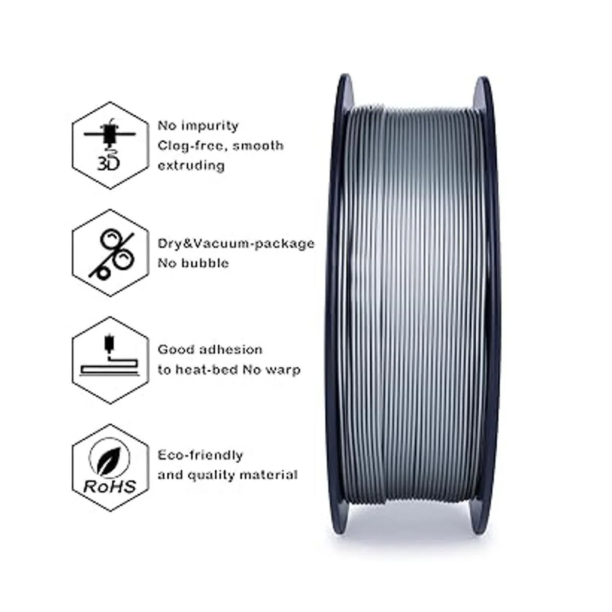 ZIRO Filamento de metal PLA de 0.069 in, filamento de impresora 3D PLA PRO metal plateado 1,75 2.2 lbs, precisión dimensional 0.001 in, plata