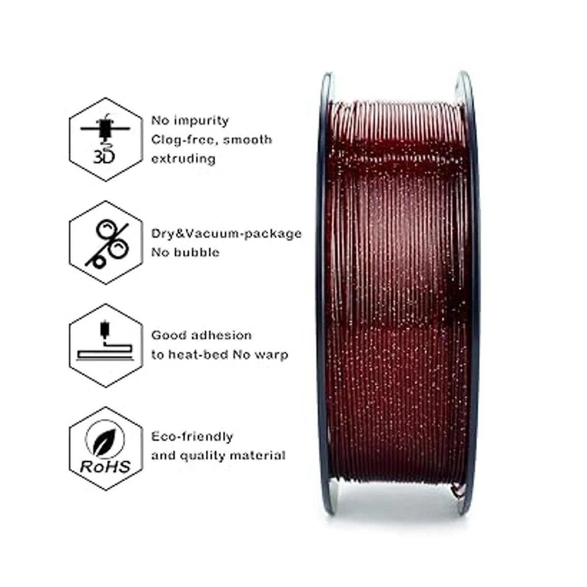 ZIRO, filamento para impresión 3D, PLA de 1,75 mm, color centelleante, 1 kg 2,2 libras, precisión dimensional 0,05 mm, Bright Red