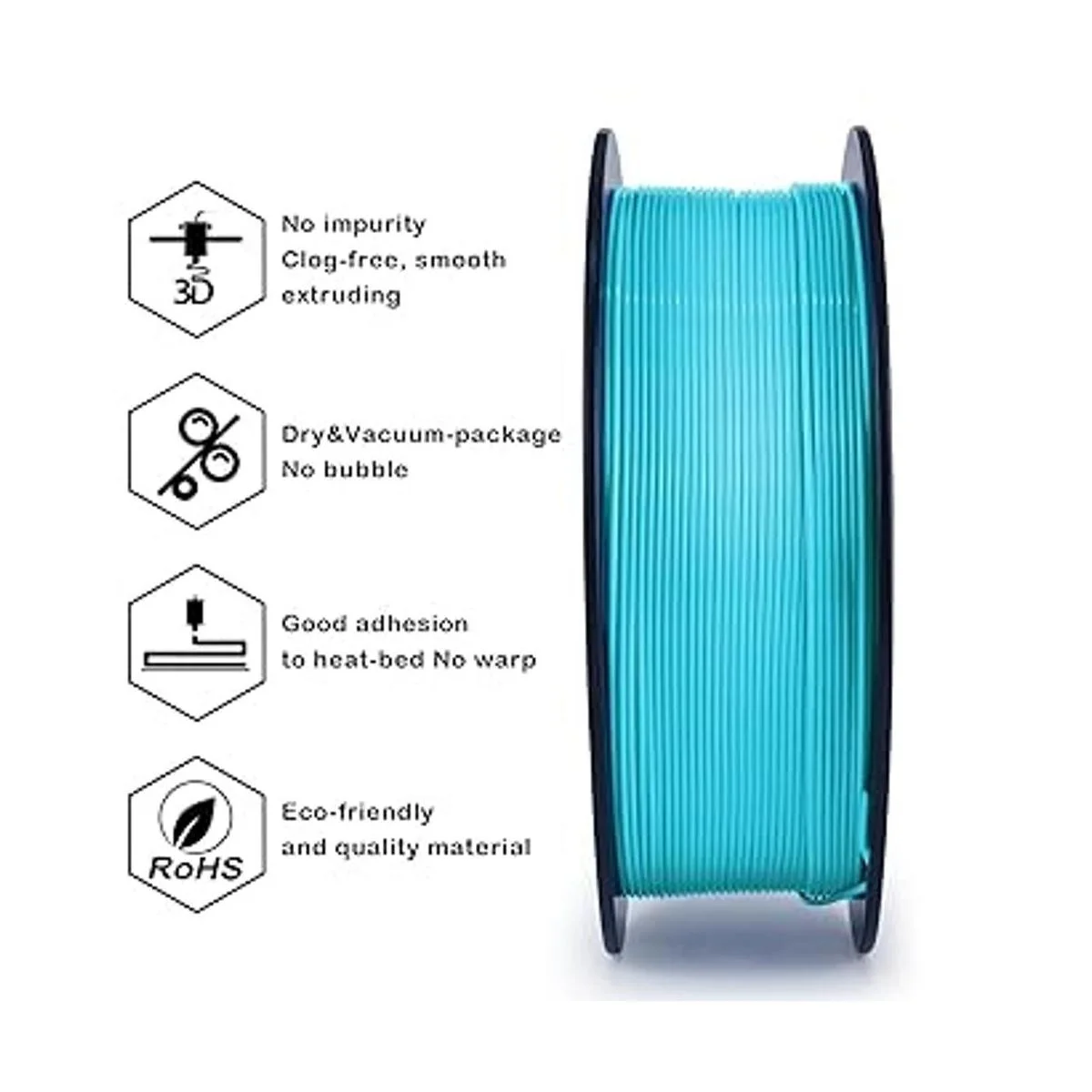 ZIRO Filamento PLA 0.069 in, filamento de impresora 3D PLA PRO Serie de color básico 0.069 in, 2.2 lbs, precisión dimensional 0.001 in, cian