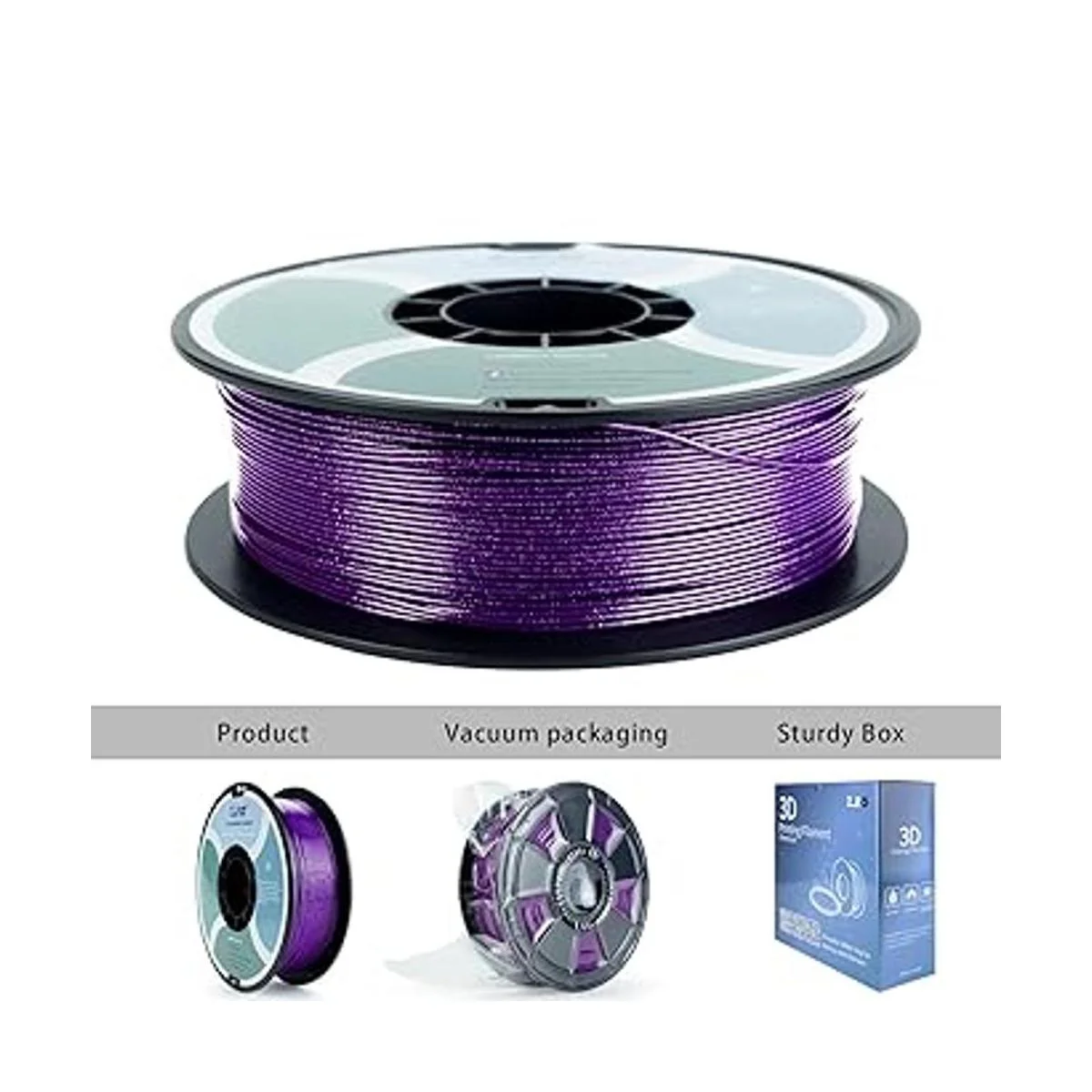 ZIRO Filamento PLA con purpurina de 0.069 in, filamento de impresora 3D PLADiamond Series 1.75 2.2 lbs, precisión dimensional 0.002 in, morado diamante