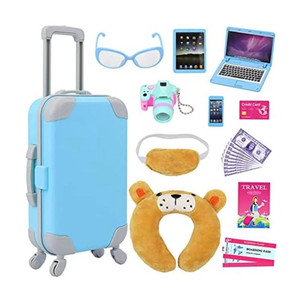 Con tantas piezas de viaje divertidas, este juego de viaje de muñeca de 18 pulgadas es un gran regalo: regala este juego de maleta de viaje de juguete para el día del niño, cumpleaños, vacaciones y fiesta divertida a los niños.