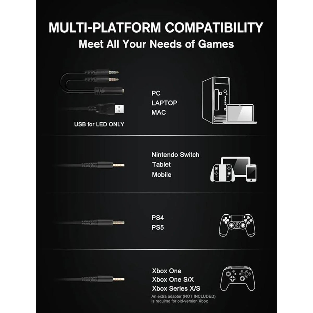 ZIUMIER Auriculares para juegos con micrófono, compatibles con PS4 PS5 Xbox One PC Laptop, auriculares sobre la oreja con luz LED RGB, micrófono con cancelación de ruido, sonido envolvente estéreo 7.1