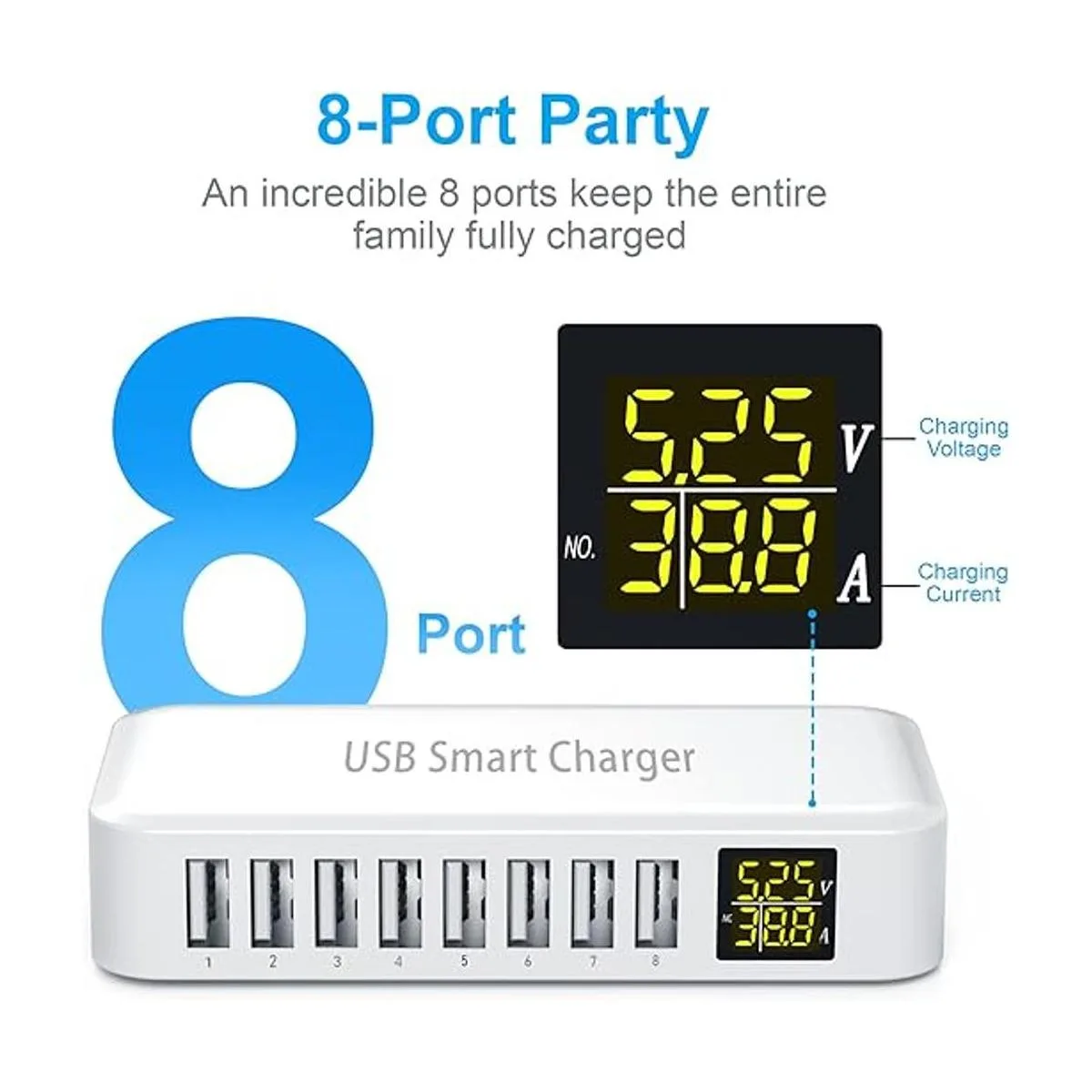 Salida de alimentación de 60 W: la estación de carga USB Ziwodiv equipada con un chip inteligente puede proporcionar hasta 60 W de salida de potencia y carga rápida 8 dispositivos. Con pantalla LED instalada, lo que te permite realizar un seguimiento de los datos de corriente y voltaje del dispositivo de carga. Mucho más conveniente para ti y tu familia para cargar simultáneamente.