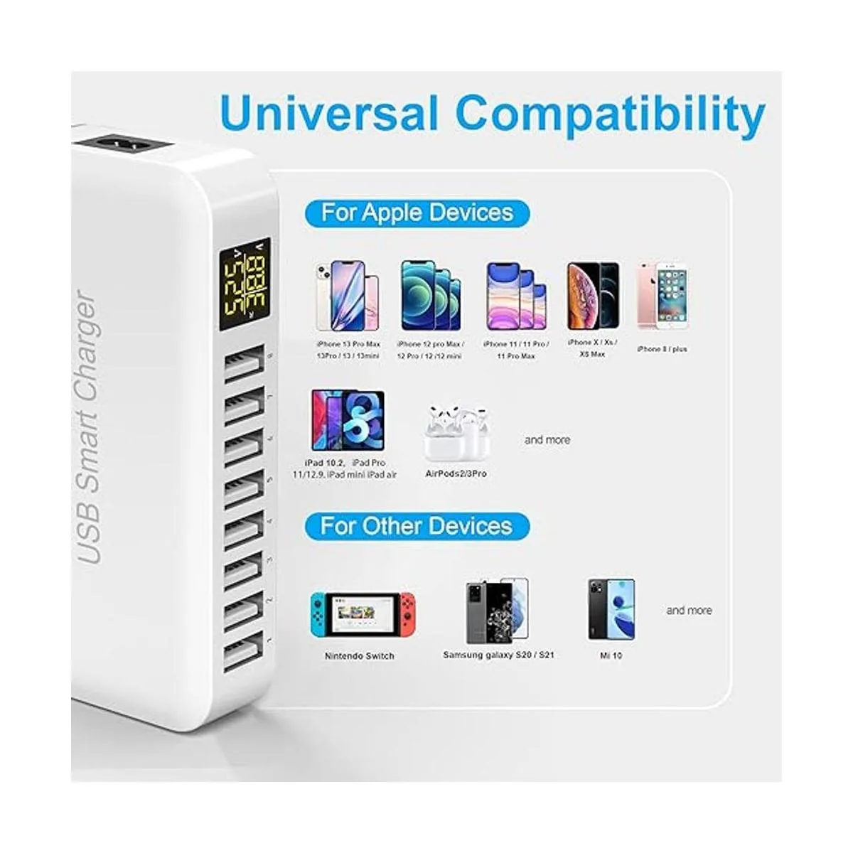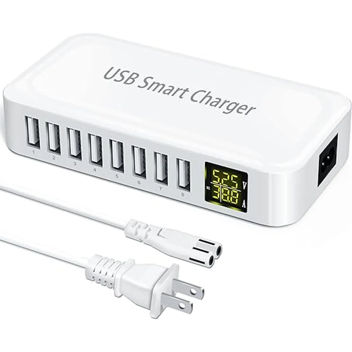 Ziwodiv Estación de carga USB, estación de carga USB de 8 puertos de 60 W12 A, concentrador de carga USBA de múltiples puertos con pantalla LED, cargador de escritorio compacto para múltiples dispositivos, iPhone, iPad, Samsung, Android y tablet