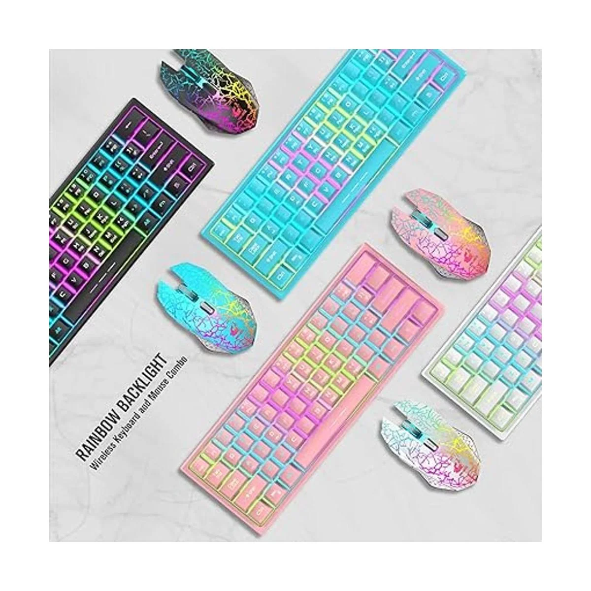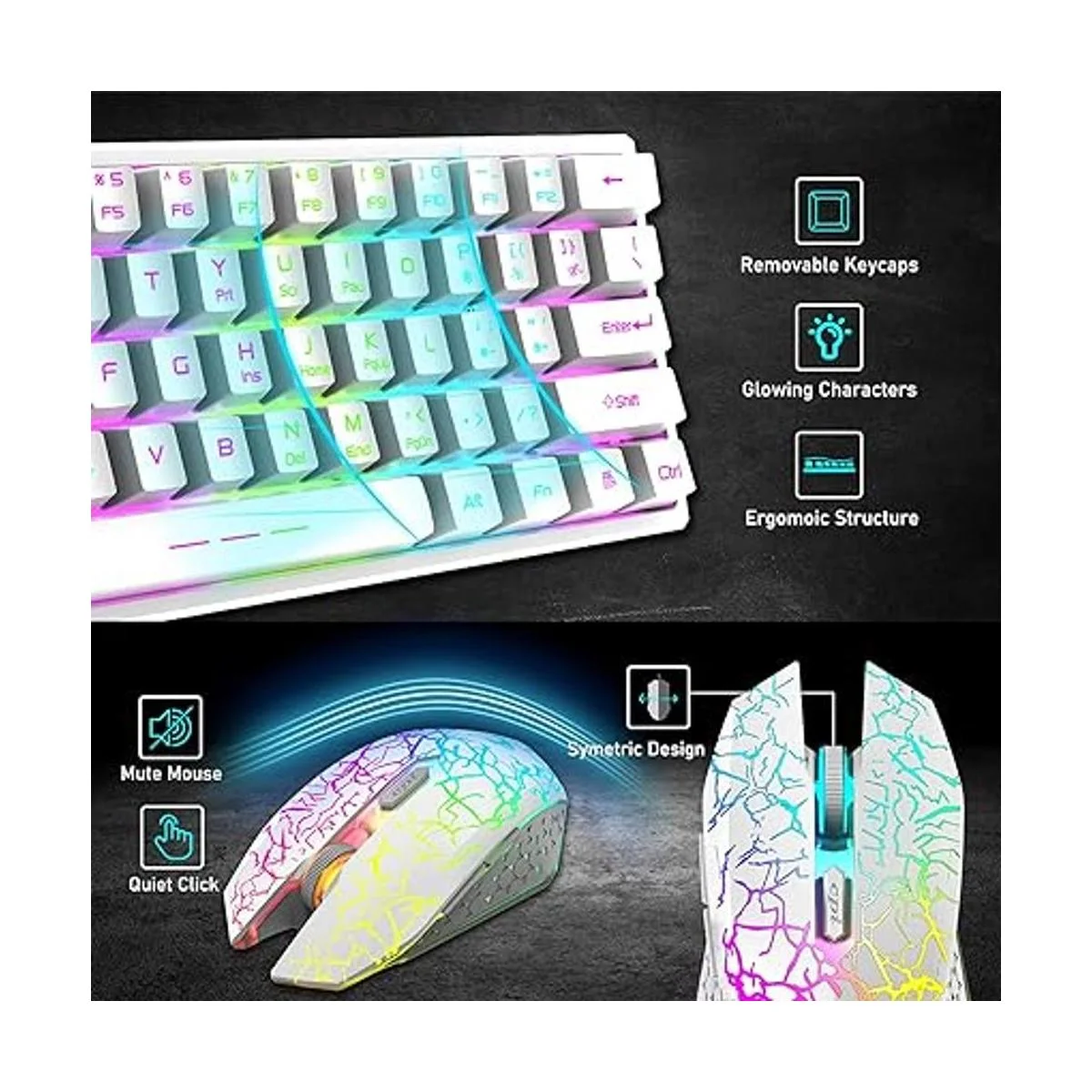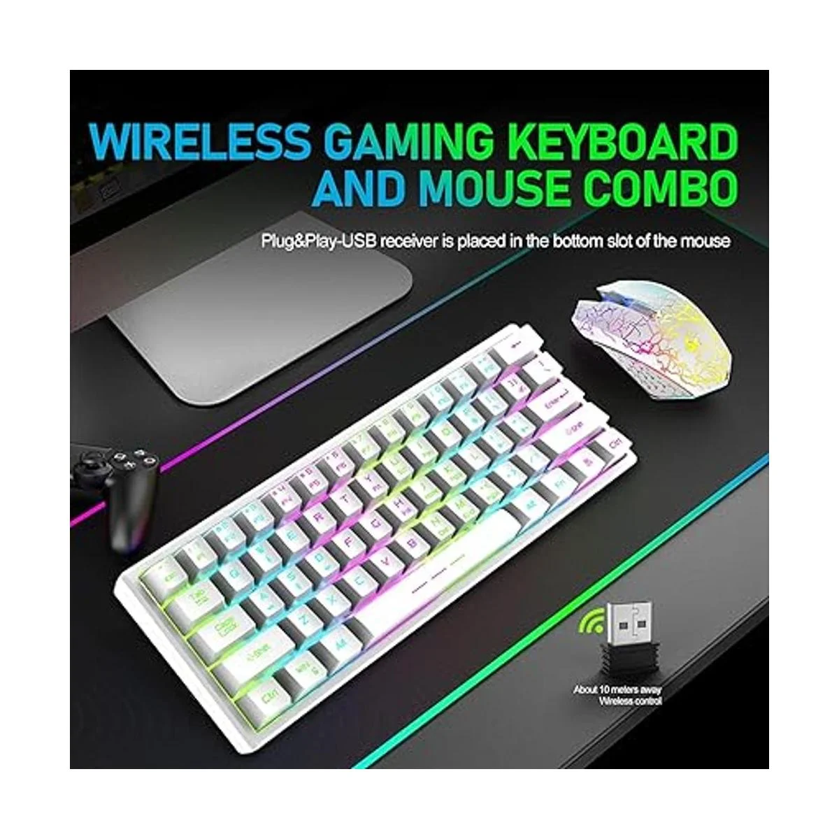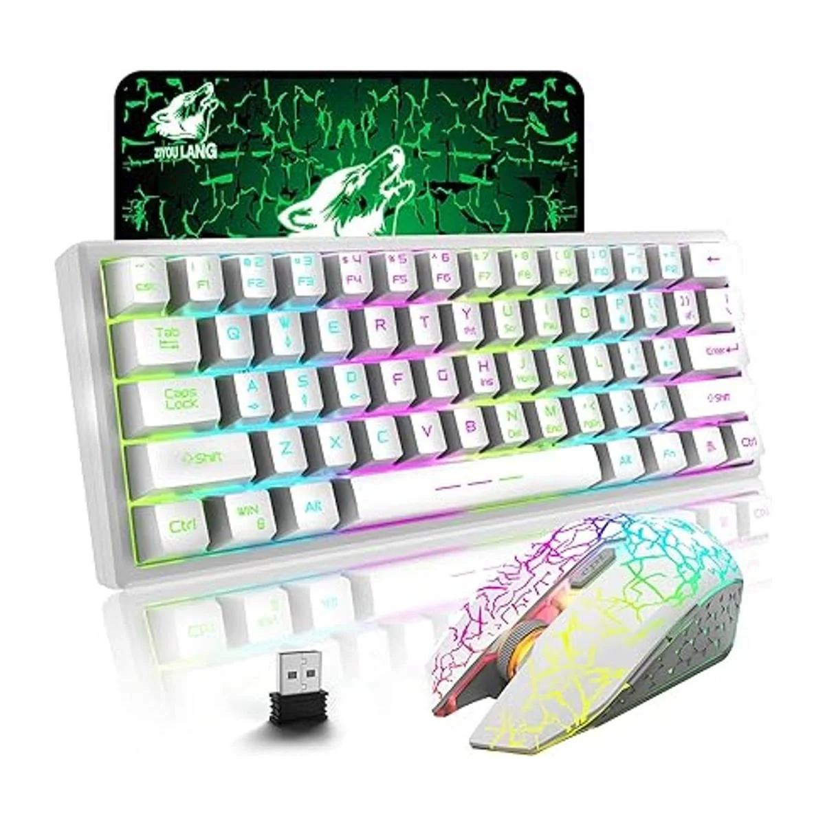 ZIYOU LANG T61 Combo de teclado y mouse inalámbricos para juegos con retroiluminación LED ergonómica de 61 teclas, antifantasma, sensación mecánica, recargable, 4000 mAh, alfombrilla de ratón para PC MAC Gamer Typistas blanco