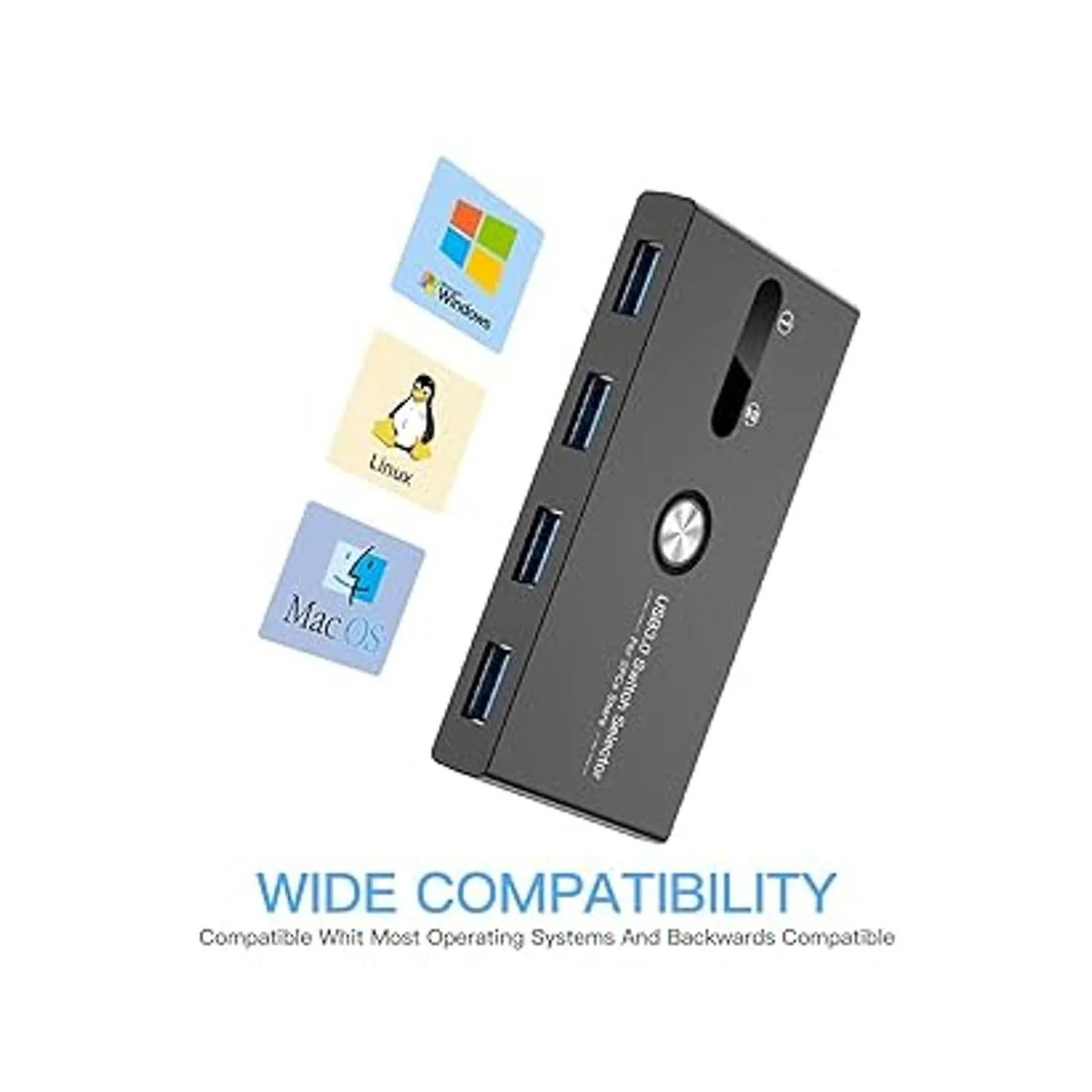 ZIYUETEK Selector de interruptores USB 3.0, conmutador KVM de 4 puertos USB para mouse, teclado, escáner, impresora, PC, portátil con interruptor de un botón y 2 cables USB 3.0
