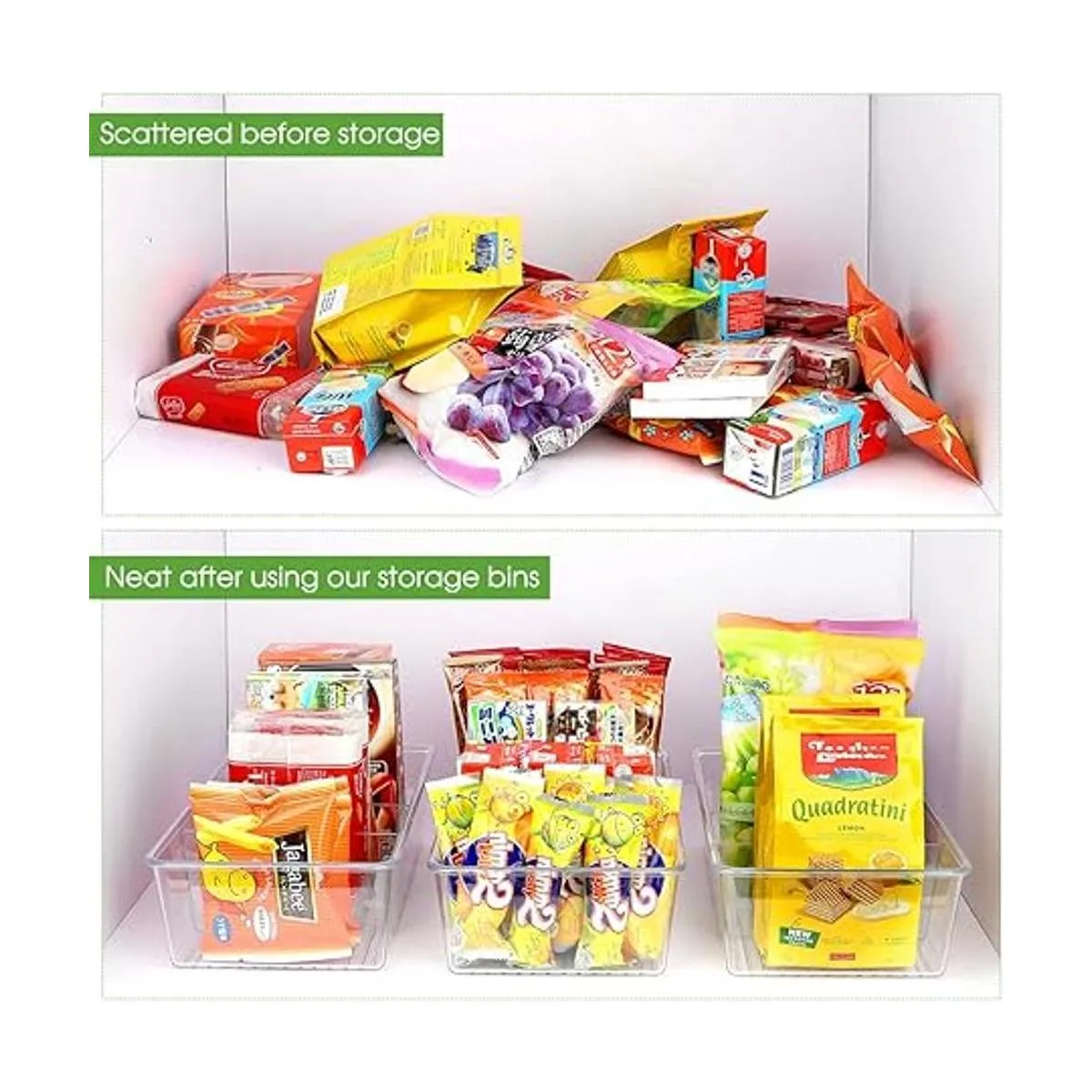Estilo apilable y bien diseñado Estos prácticos contenedores apilables están diseñados para ahorrar espacio para que puedas organizar eficazmente tu despensa y maximizar el espacio. Conveniente para apilar o utilizar uno al lado del otro para mantener los artículos organizados y fáciles de encontrar.