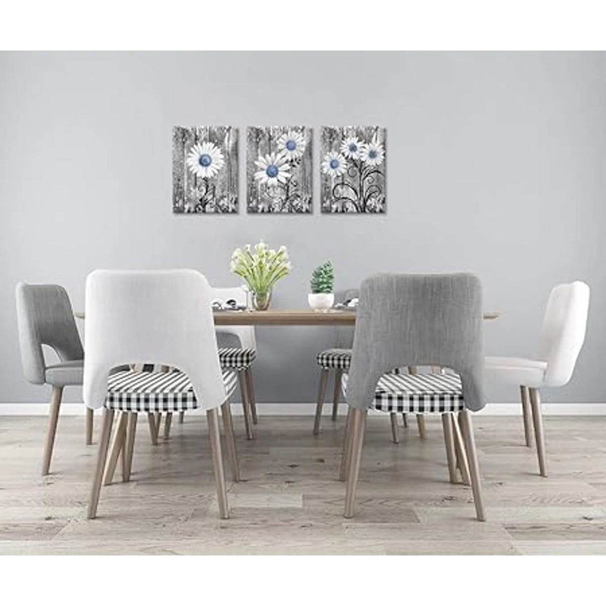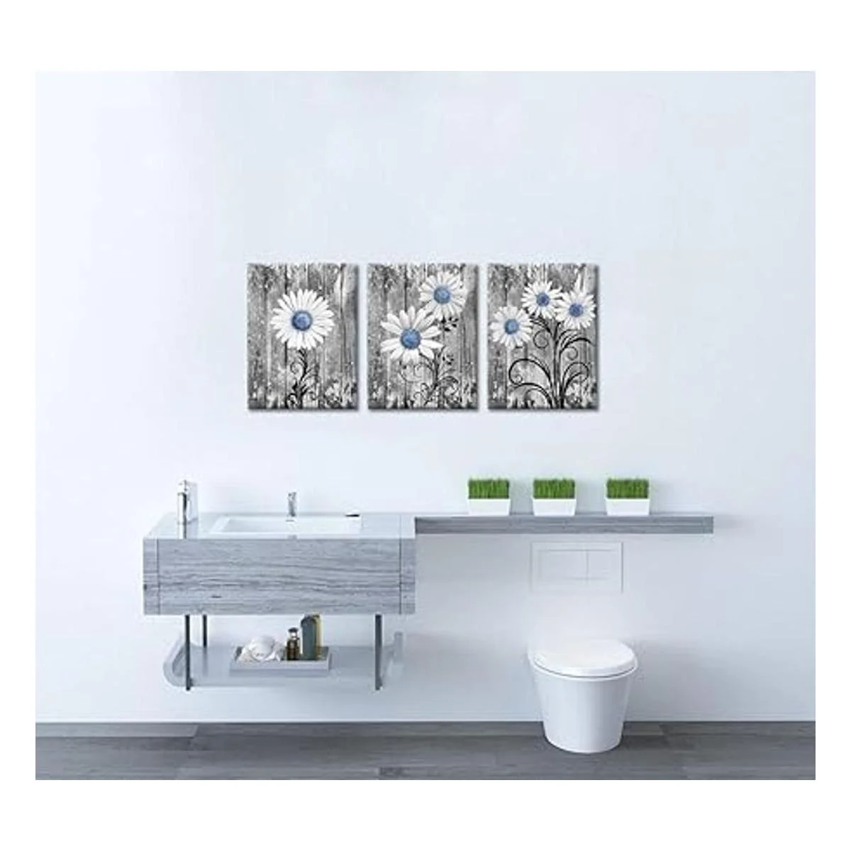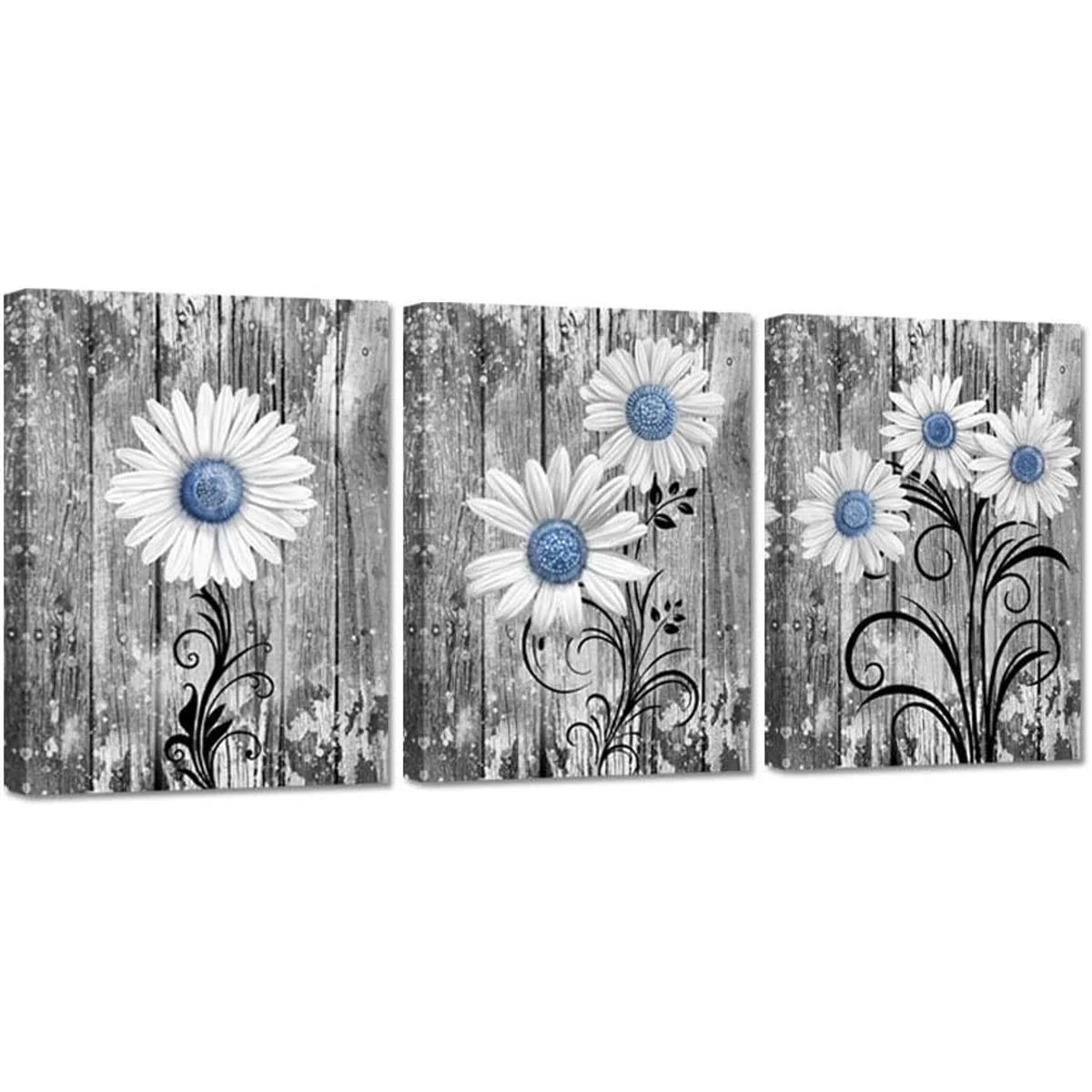 Zlove 3 piezas baño imagen decoración de pared rústica azul margarita flores giclée impresión galería abrigo moderno floral hogar cocina decoración listo para colgar 12 x 16 pulgadas x 3 piezas