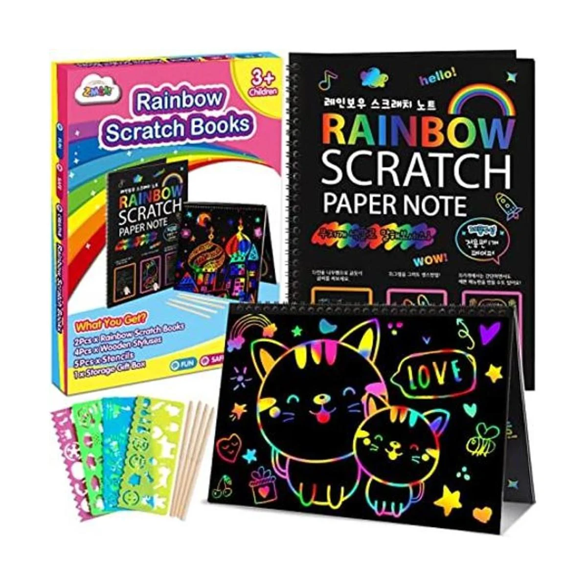 Seguridad para los niños: Prestamos atención a la calidad y la salud de los niños, nuestras tablas de cuaderno Cool Scratch están hechas de materiales no tóxicos y sin olor. Según nuestras ventas actuales, a muchos padres les gusta mucho, incluyendo a sus niños.