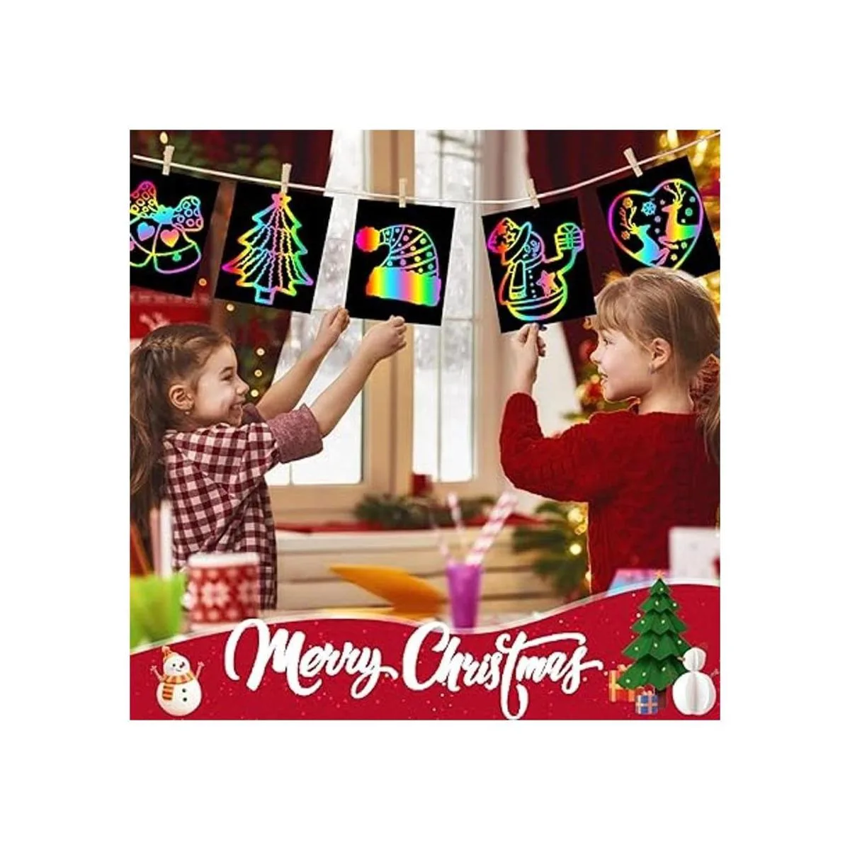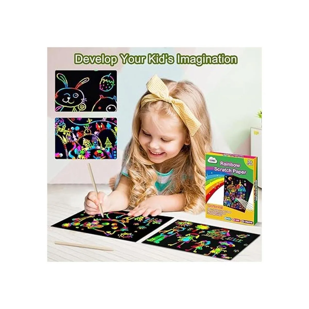 ZMLM Juego de 50 piezas de papel para rascar con diseño de arcoíris para niños, color negro, hoja tablero con 5 lápices de madera para el juego de fiesta de Pascua, Navidad, cumpleaños, regalo