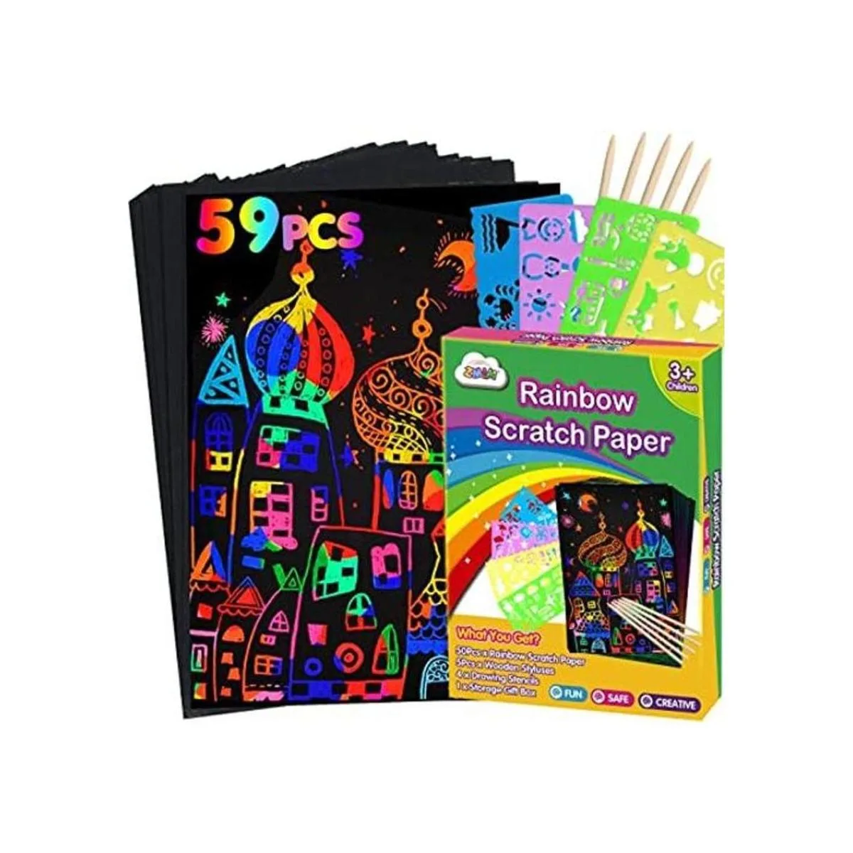 ZMLM Juego de arte de papel para rascar 59 piezas de arte mágico de dibujo para niños, kit de suministro de papel para raspar negro, juguete a granel para niños de 3, 4, 5, 6, 7, 8, 9, 10, regalo de fiesta de cumpleaños de Navidad para niñas y niños