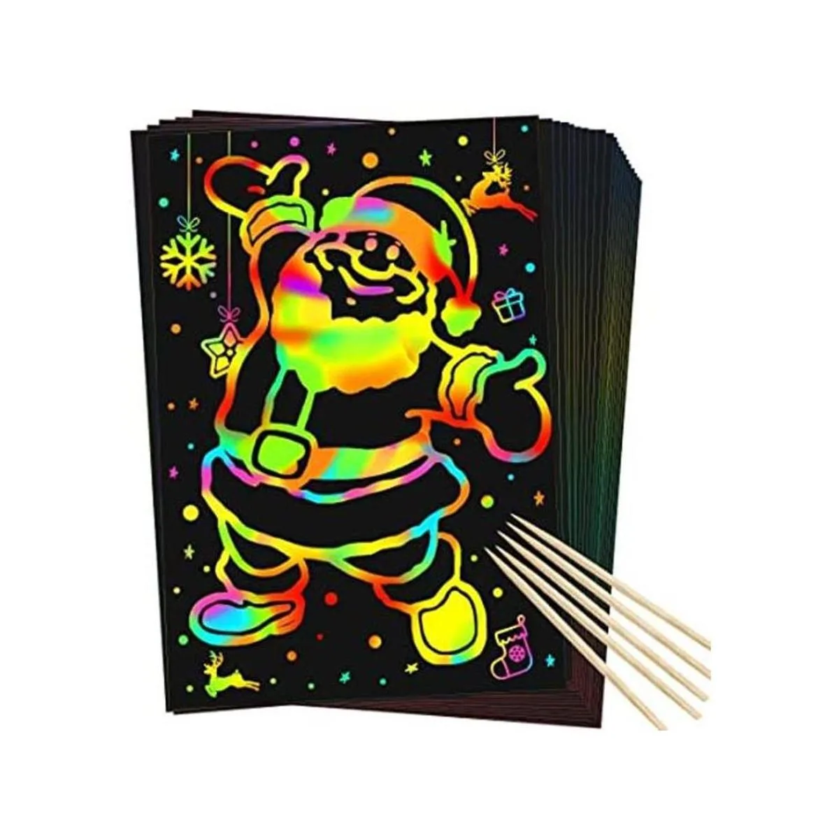 ZMLM Juego de papel de arte arcoíris para rascar 50 piezas mágicas para manualidades, kits de suministros de arte para niños, niñas y niños, hojas de notas negras para rasguños, bloc de garabatos para divertirse, juguete de bricolaje, recuerdos de fiesta, juego de Navidad, regalo de cumpleaños