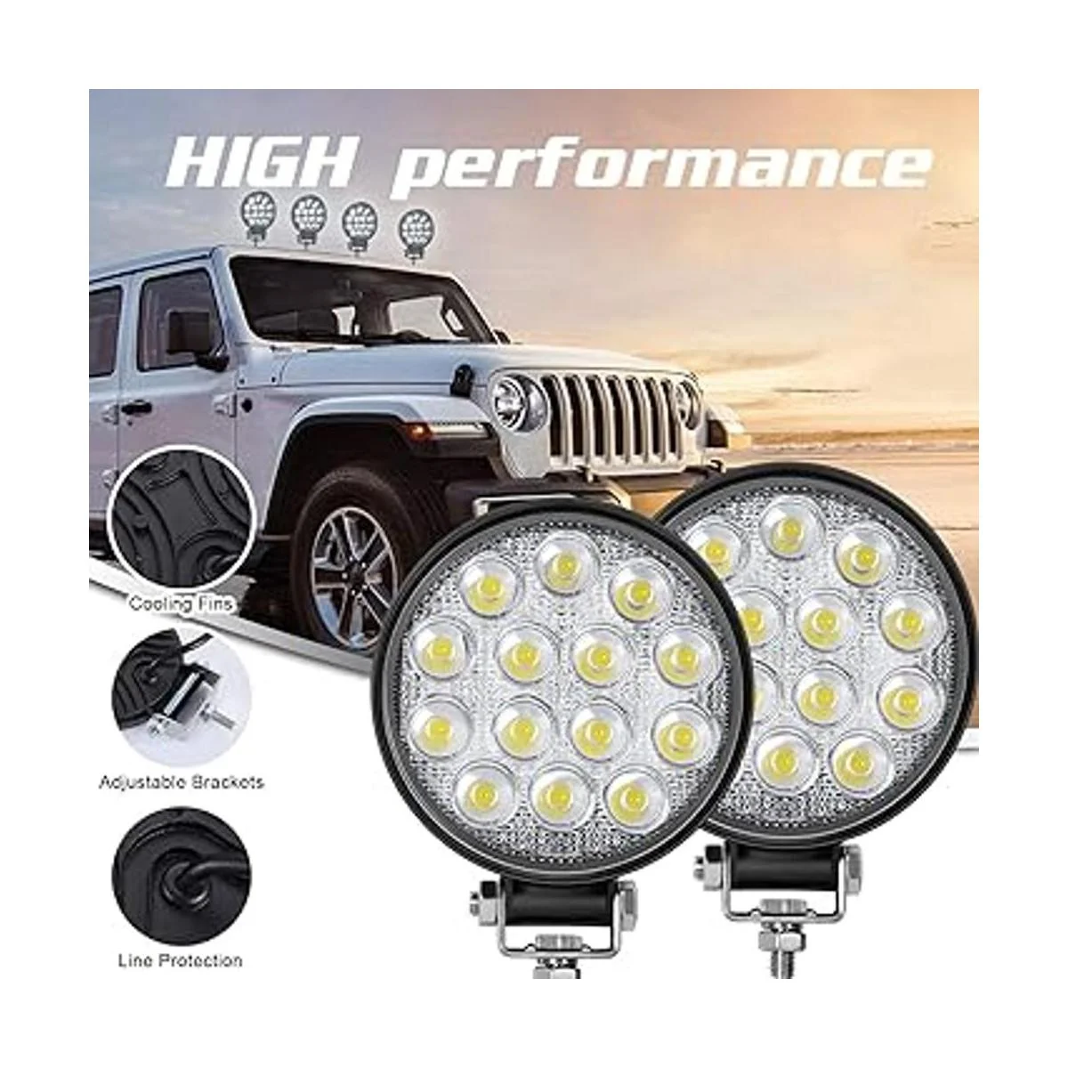 Aplicación: las barras de luz LED redondas de 4.5 pulgadas con voltaje de funcionamiento de CC 930 V, se adapta a todo terreno, resistente, Jeep, SUV, ATV, UTV, camión, coche, barco, etc.