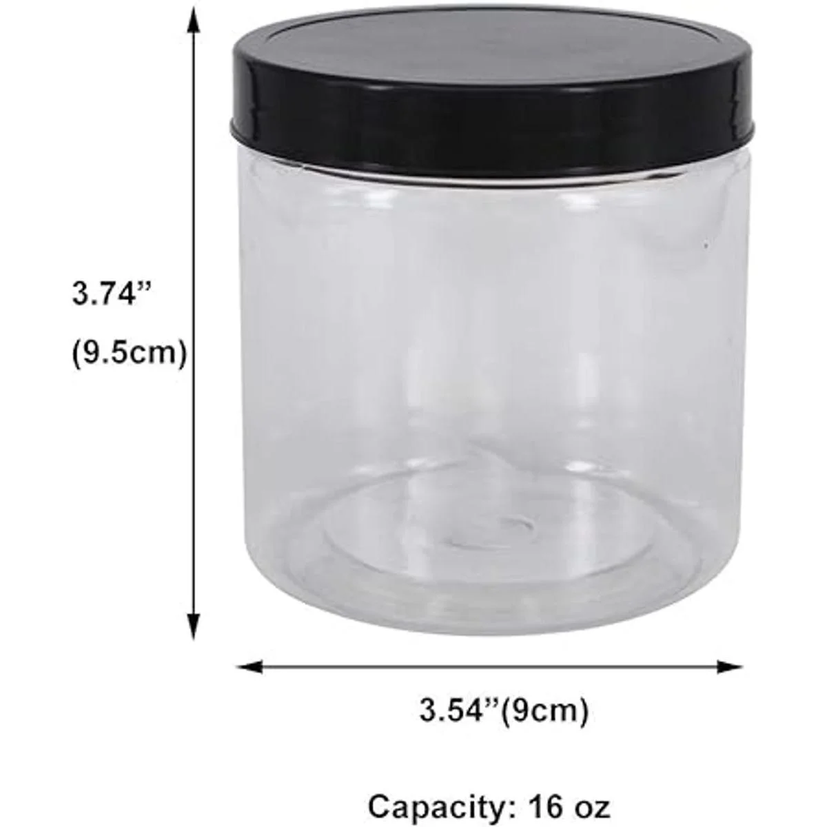 Tamaño del tarro: 3.5 in x 3.7 in diámetro inferior x altura de los tarros. Capacidad de los tarros de almacenamiento: 16 onzas. Se puede llenar con agua de 16.2 fl oz