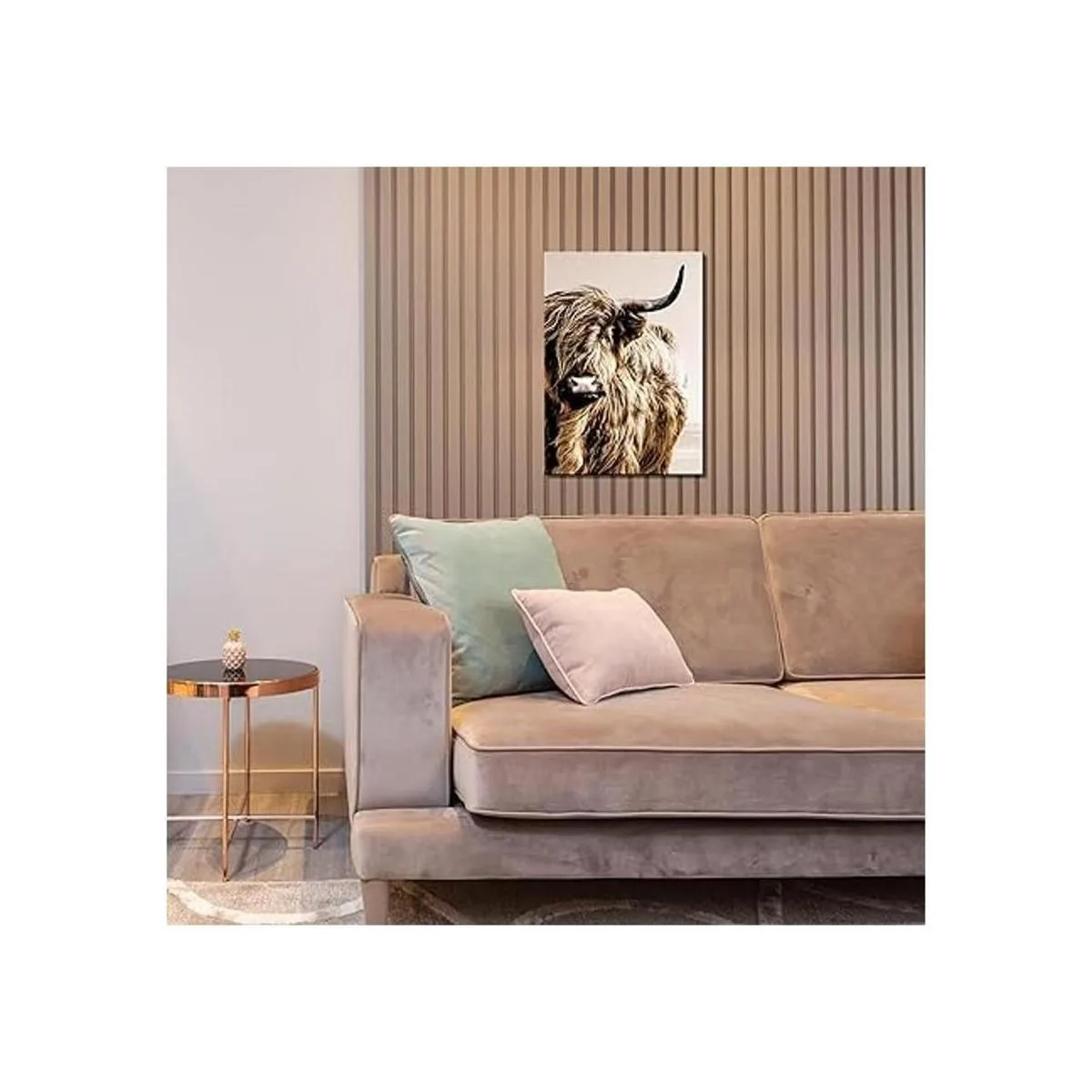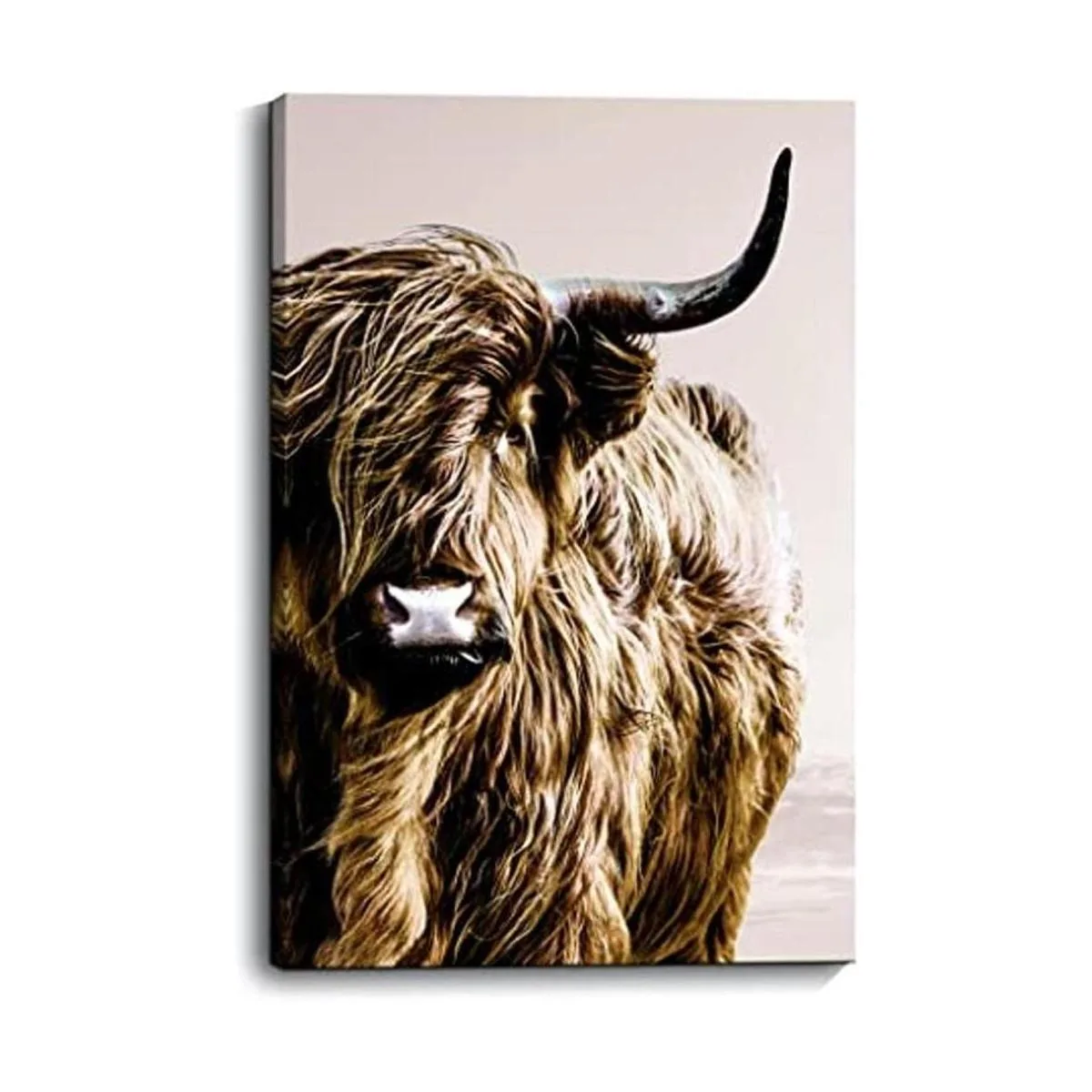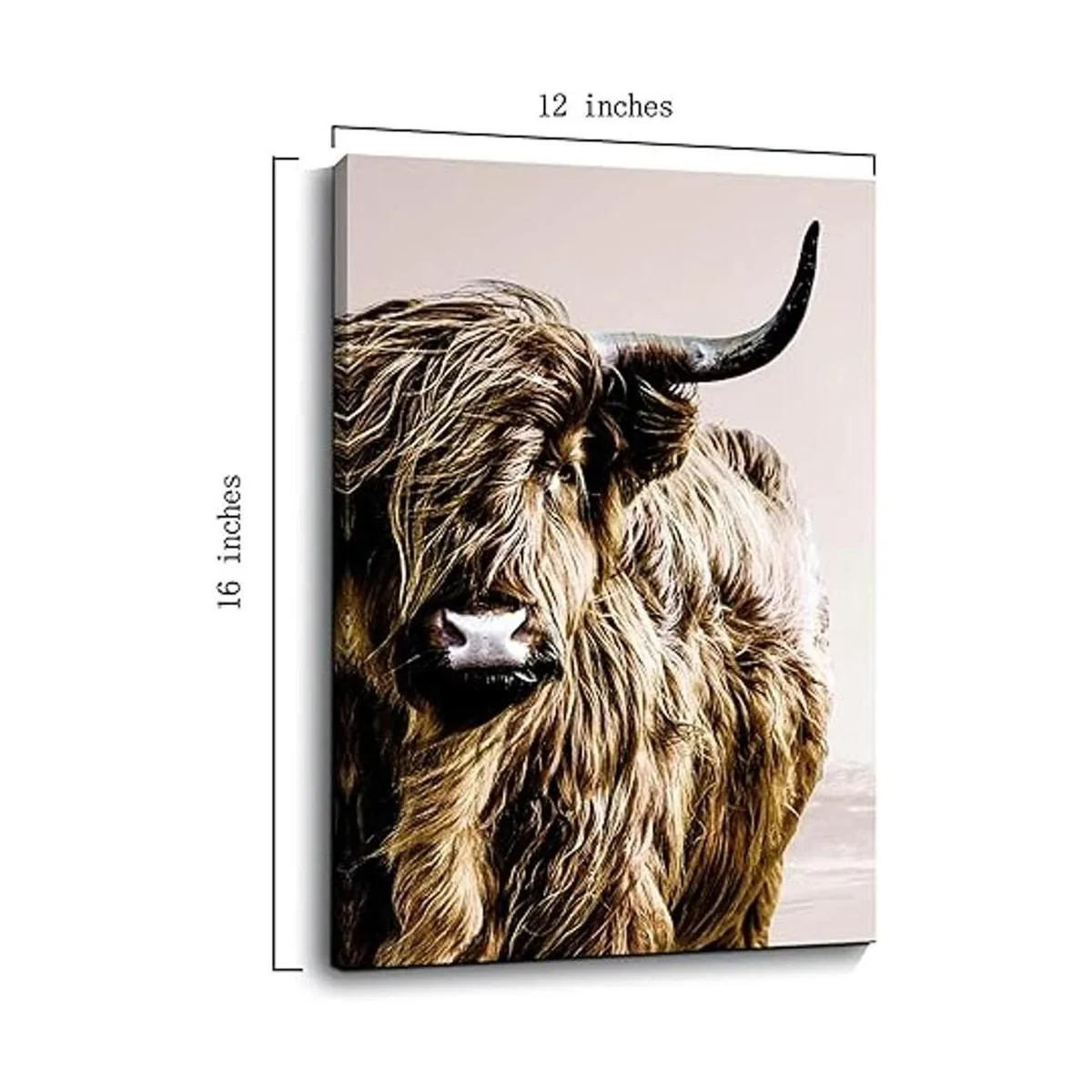ZNZ Arte de pared de vaca de las tierras altas, decoración de pared de granja, impresiones en lienzo de yak fuerte y segura con cuernos largos, arte de pared de animales, imágenes de ganado esponjosas utilizadas en dormitorio, baño, oficina, chimenea, cocina, comedor, decoración de 12 x 16 pulgadas, listo para colgar