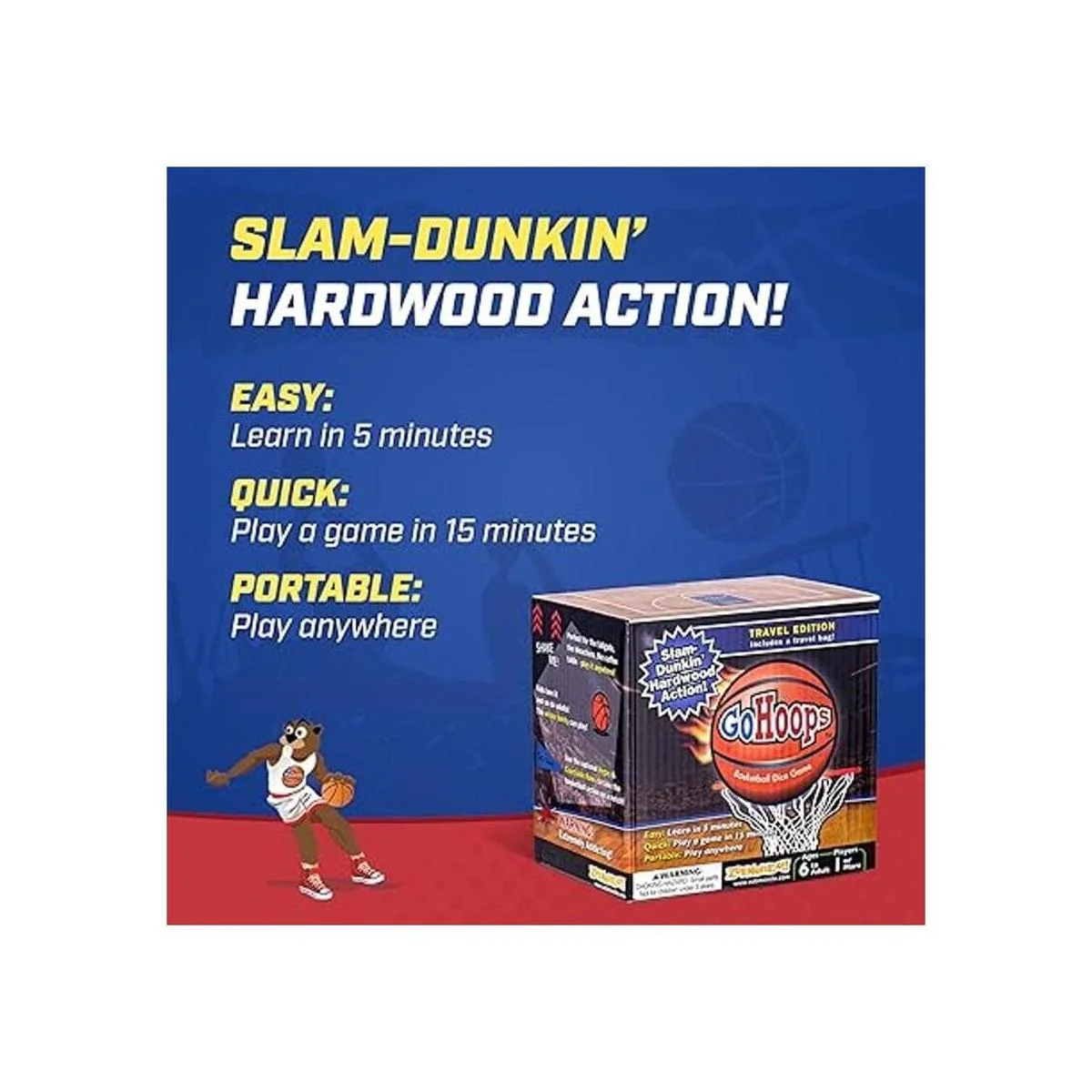 Zobmondo GoHoops Juego de dados de baloncesto, jugar al baloncesto en cualquier lugar con diversión, juego de dados personalizados portátil para adultos y niños a partir de 6 años