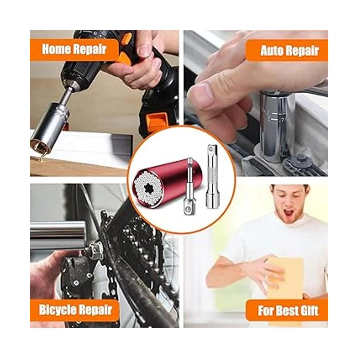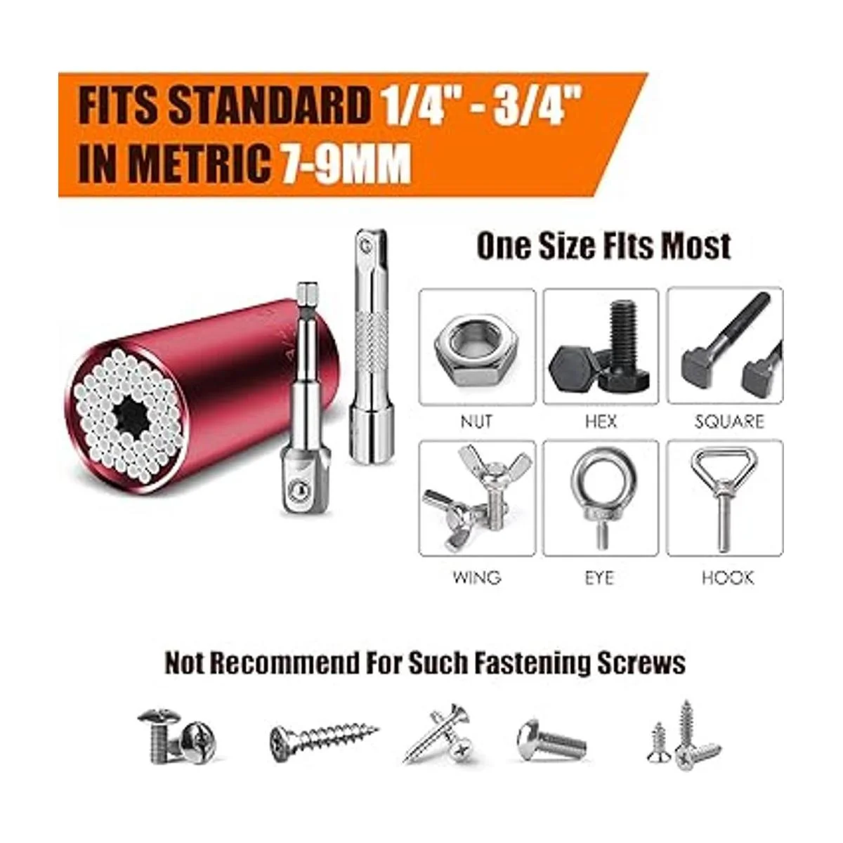 Diseño de ajuste automático: diseño único que se ajusta automáticamente a cualquier tamaño o forma, adecuado para tornillos estándar de 1/4 a 3/4 pulgadas y métricos de 0.276 in a 0.748 in, satisface todas tus necesidades, compacto y fácil de llevar.