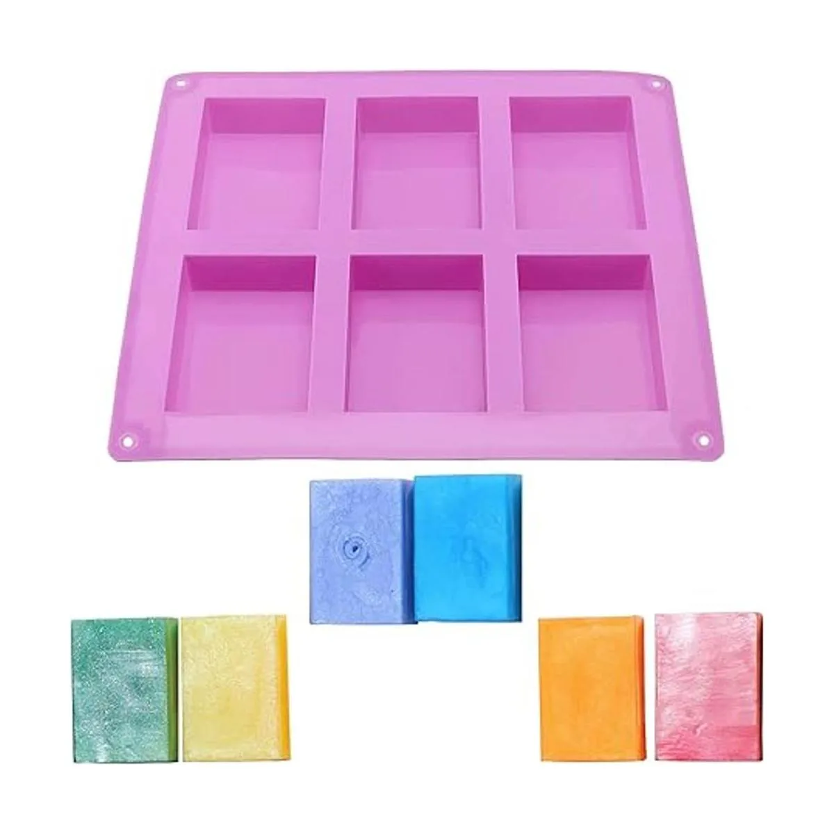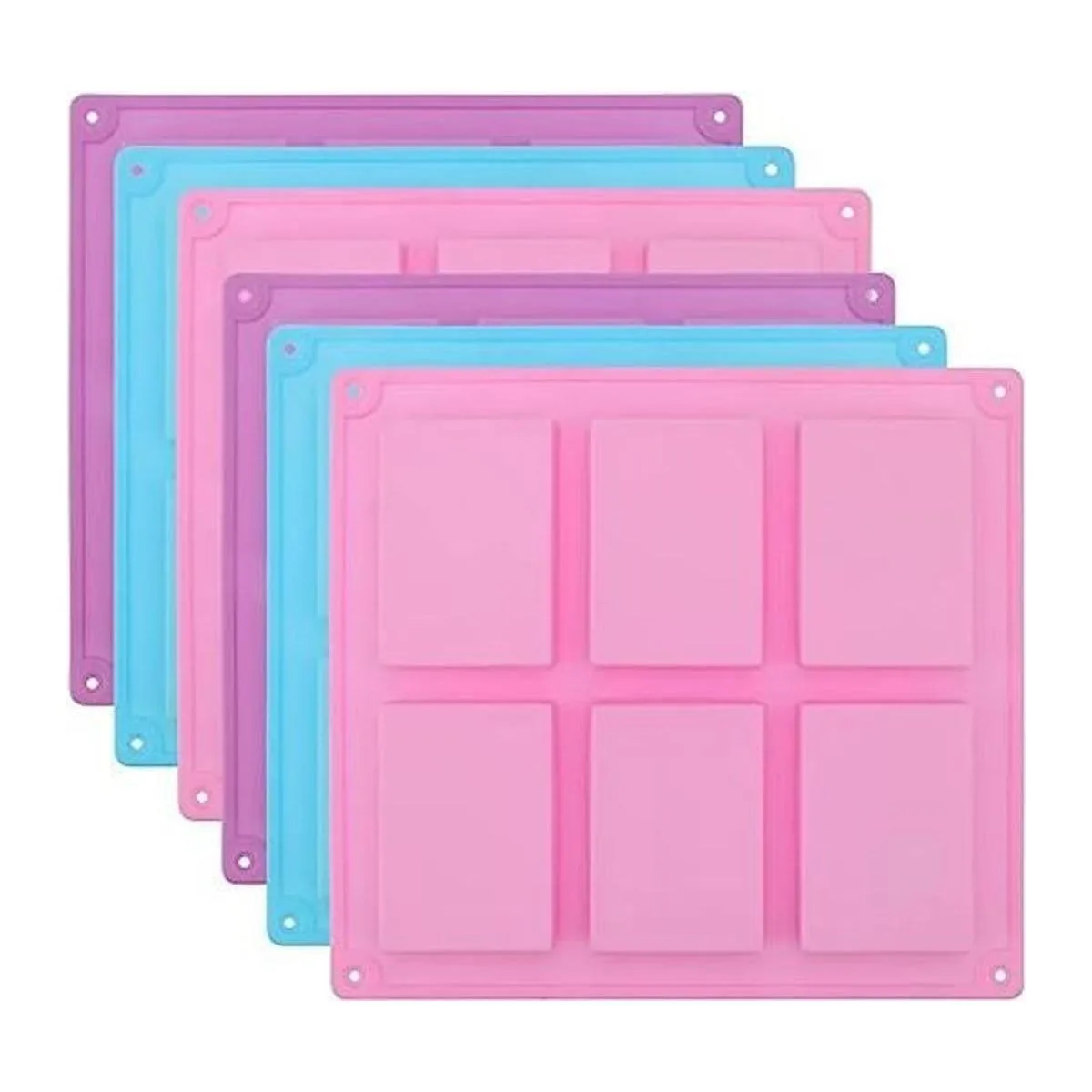 ZOENHOU Paquete de 6 moldes de jabón de silicona, 6 cavidades rectangulares de silicona para hacer jabón, hacer pan, manualidades hechas a mano, azul, rosa, morado, 9.25 x 8.34 x 1 pulgadas